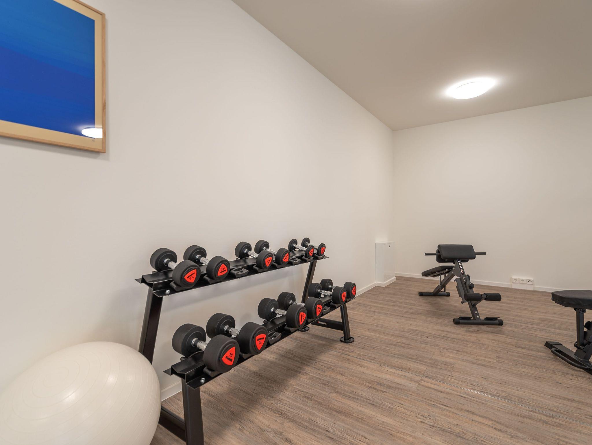Im Dachgeschoss des Hauses lädt Sie der exklusive Wellnessbereich zum Abschalten ein mit zwei Saunen, einem stilvollen Ruheraum und einer großzügigen Dachterrasse mit Panoramablick. Außerdem befindet sich ein kleiner Fitnessraum im Kellergeschoss.