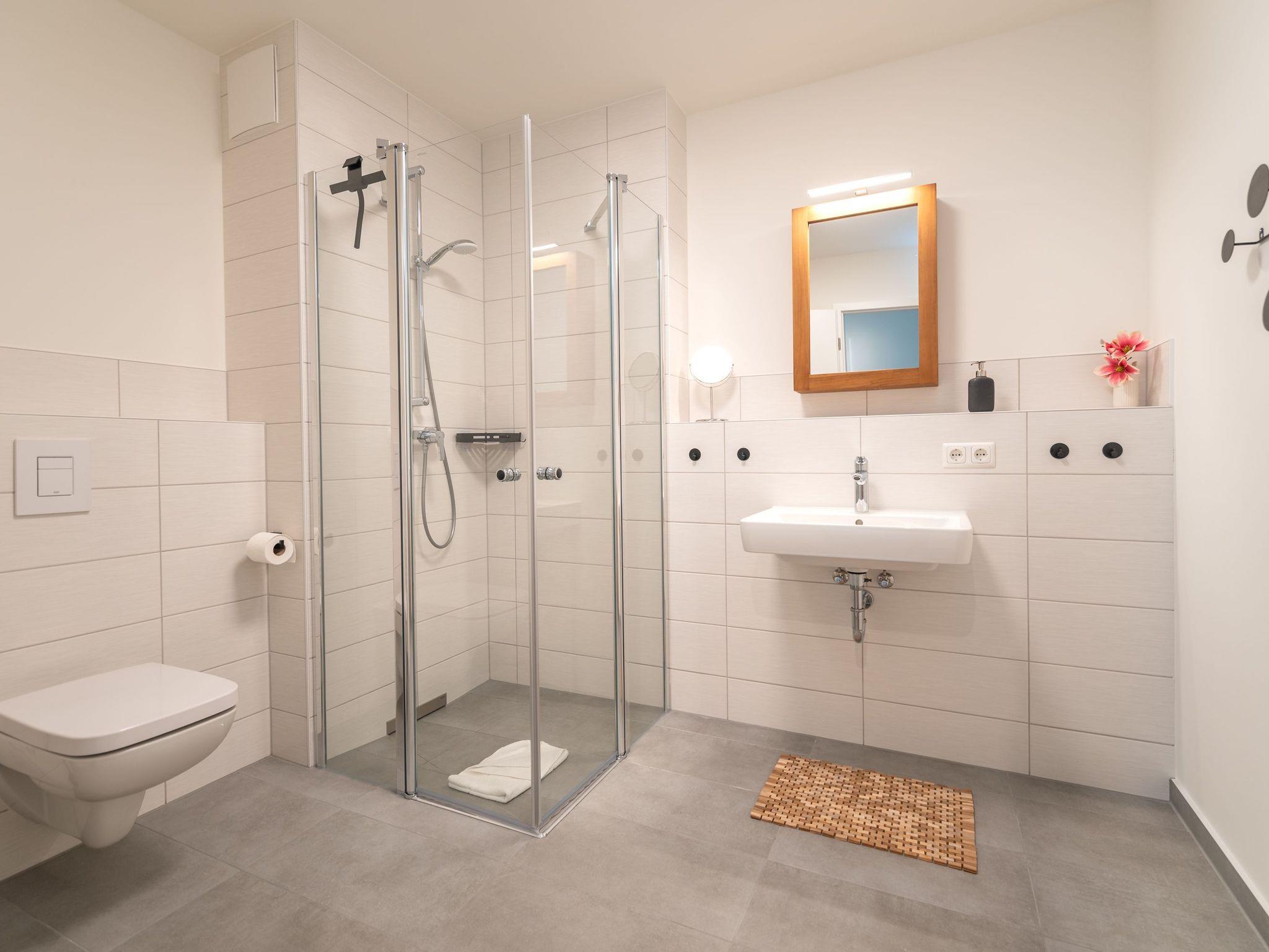 Der überdachte Balkon bietet den idealen Ort für gemütliche Stunden im Freien ? ob zum Frühstück mit Blick in die grüne Umgebung oder zum entspannten Tagesausklang. WLAN sowie ein eigener Parkplatz direkt am Haus stehen Ihnen selbstverständlich kostenfrei zur Verfügung. Eine Fahrradabstellmöglichkeit befindet sich in einem Abstellraum im Erdgeschoss des Hauses (ebenerdiger Ausgang).