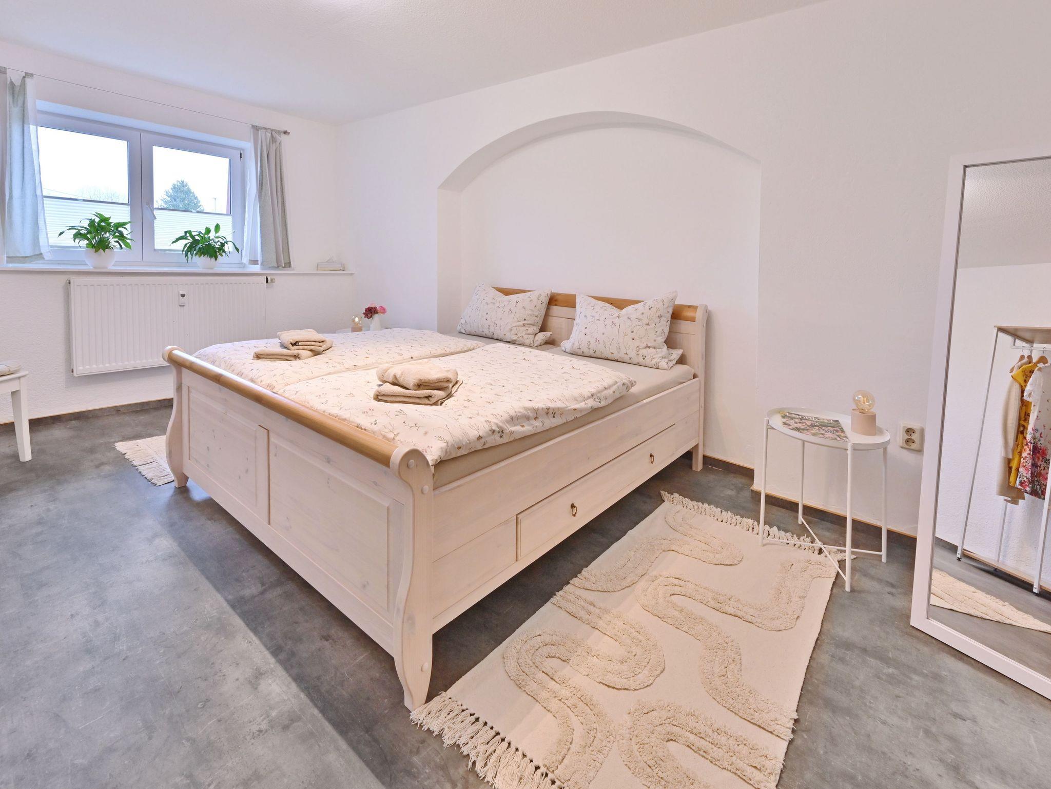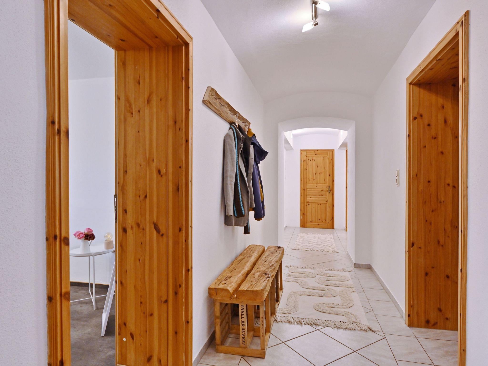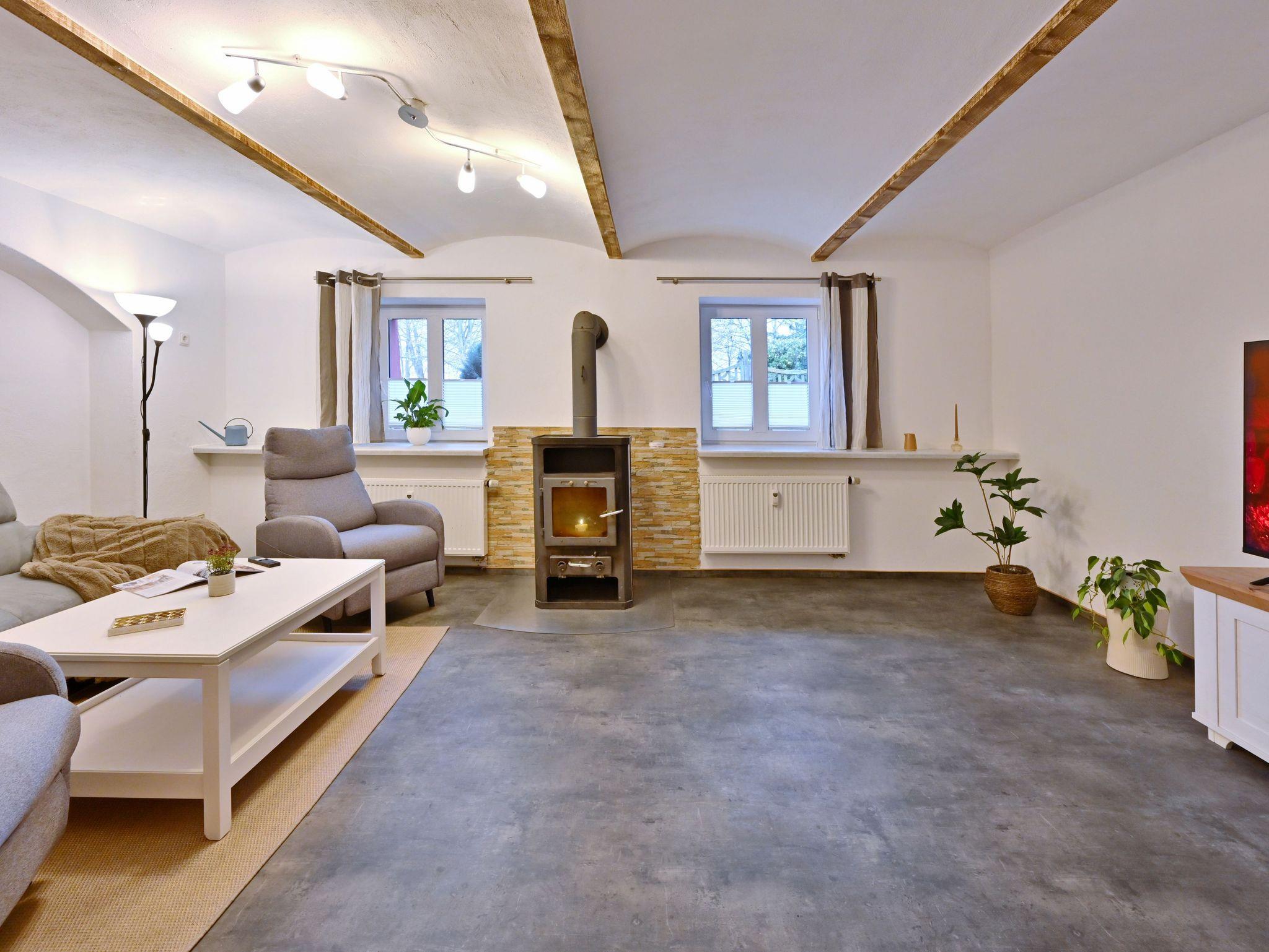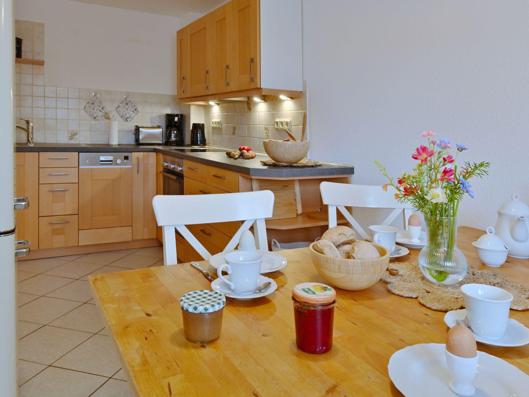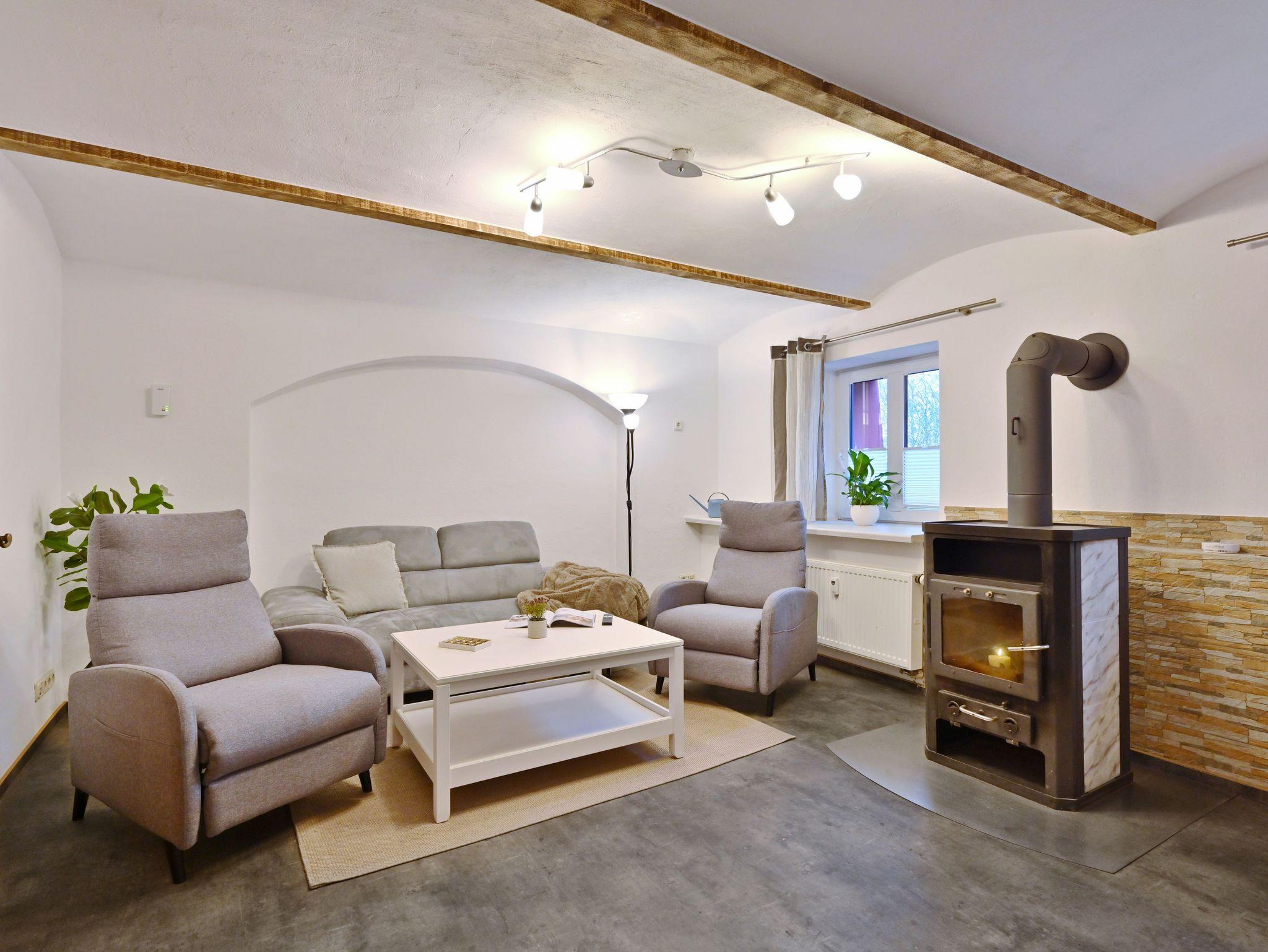 Im restaurierten Gutshaus Dumsevitz befindet sich diese Ferienwohnung, sie bestehen aus einem geräumigen Wohnzimmer mit Kamin, einem Schlafzimmer mit Doppelbett und einem mit zwei Einzelbetten, sowie ein Bad mit Dusche, Badewanne und WC. Die Ferienwohnung hat eine Wohnfläche von ca. 90 m², für 4 Personen.