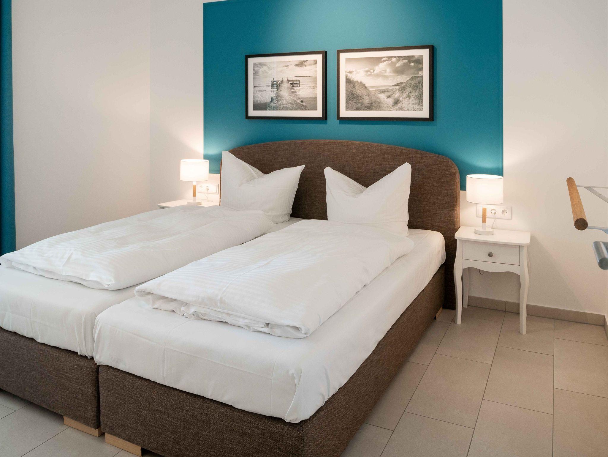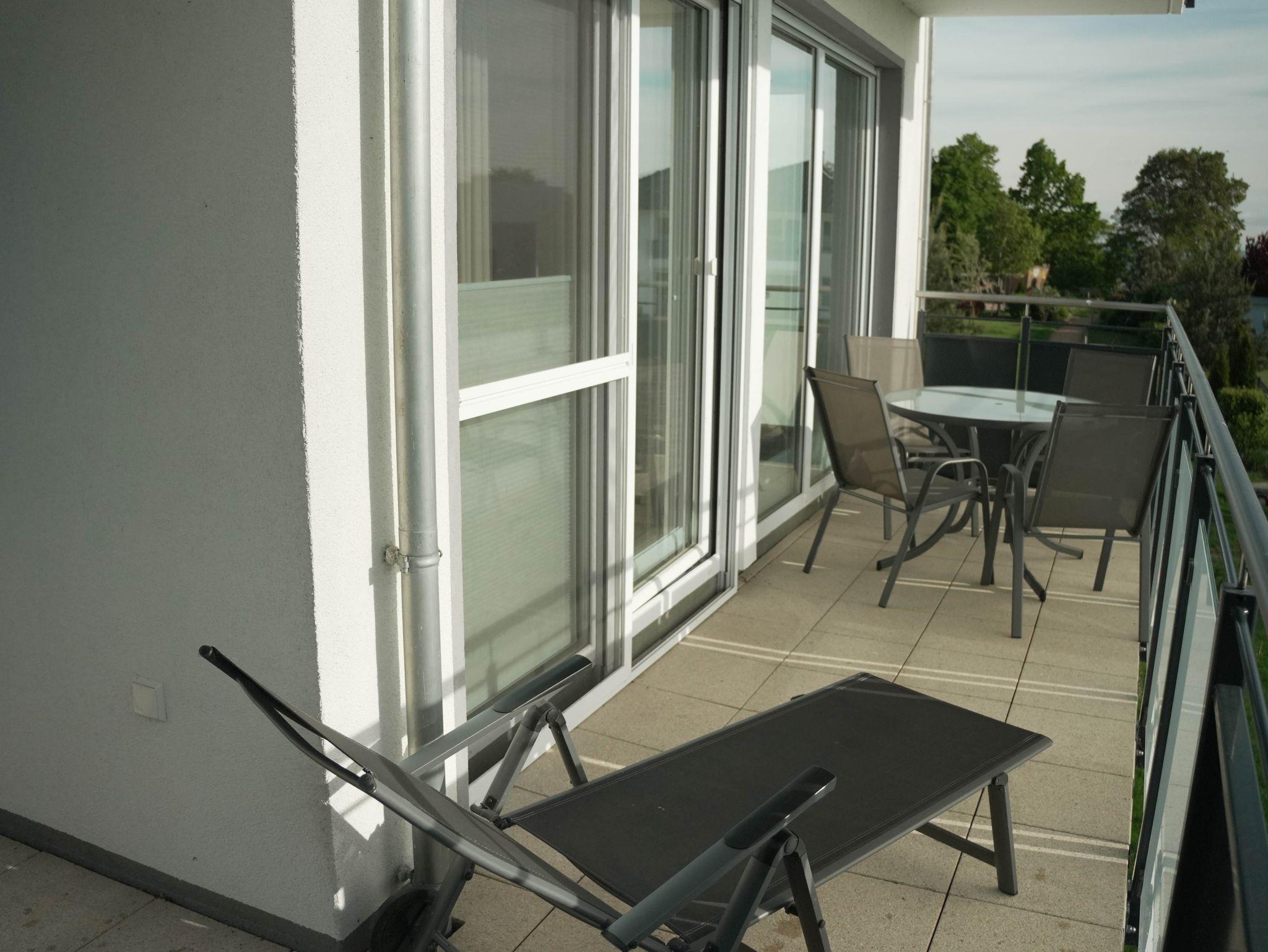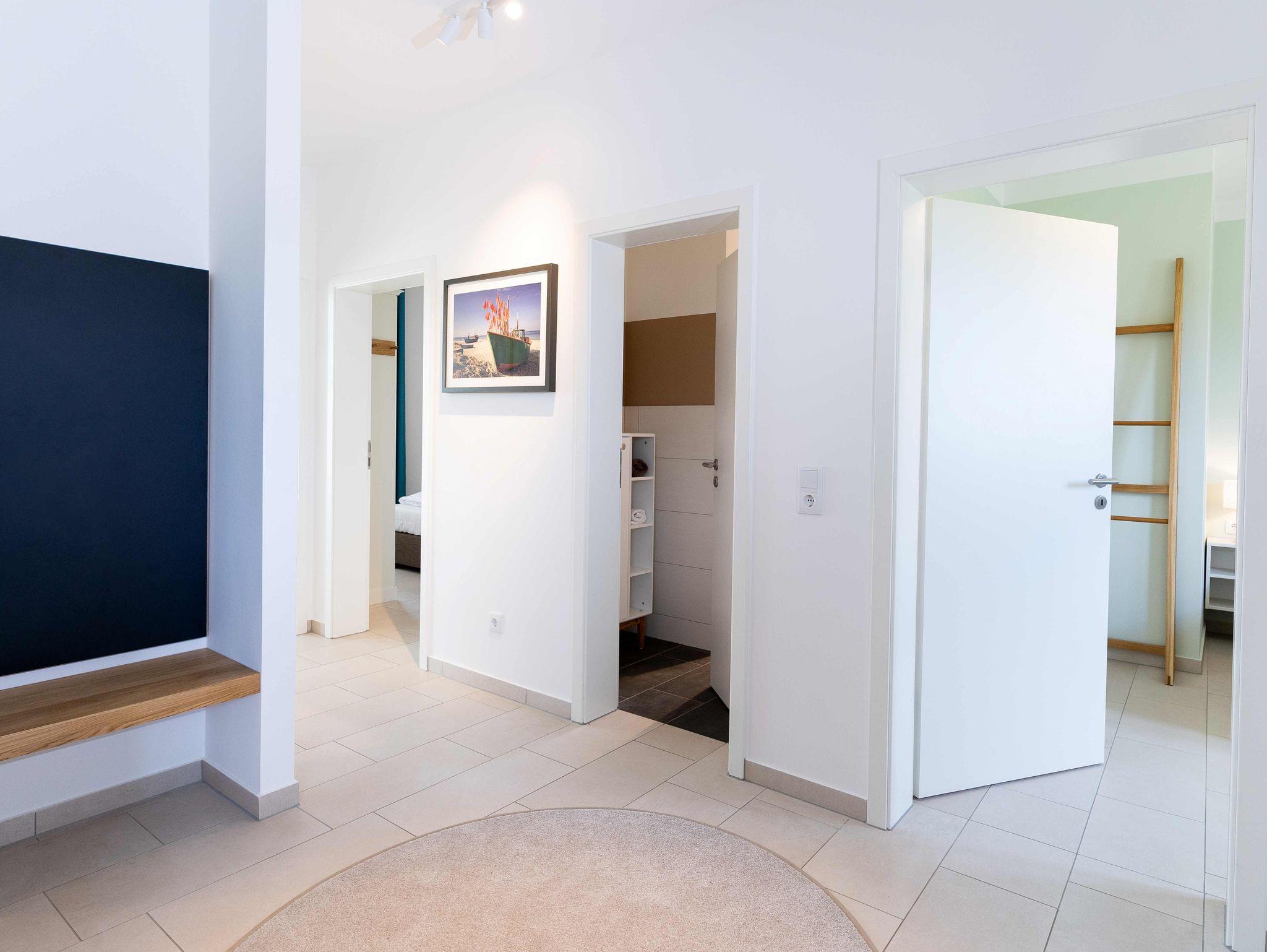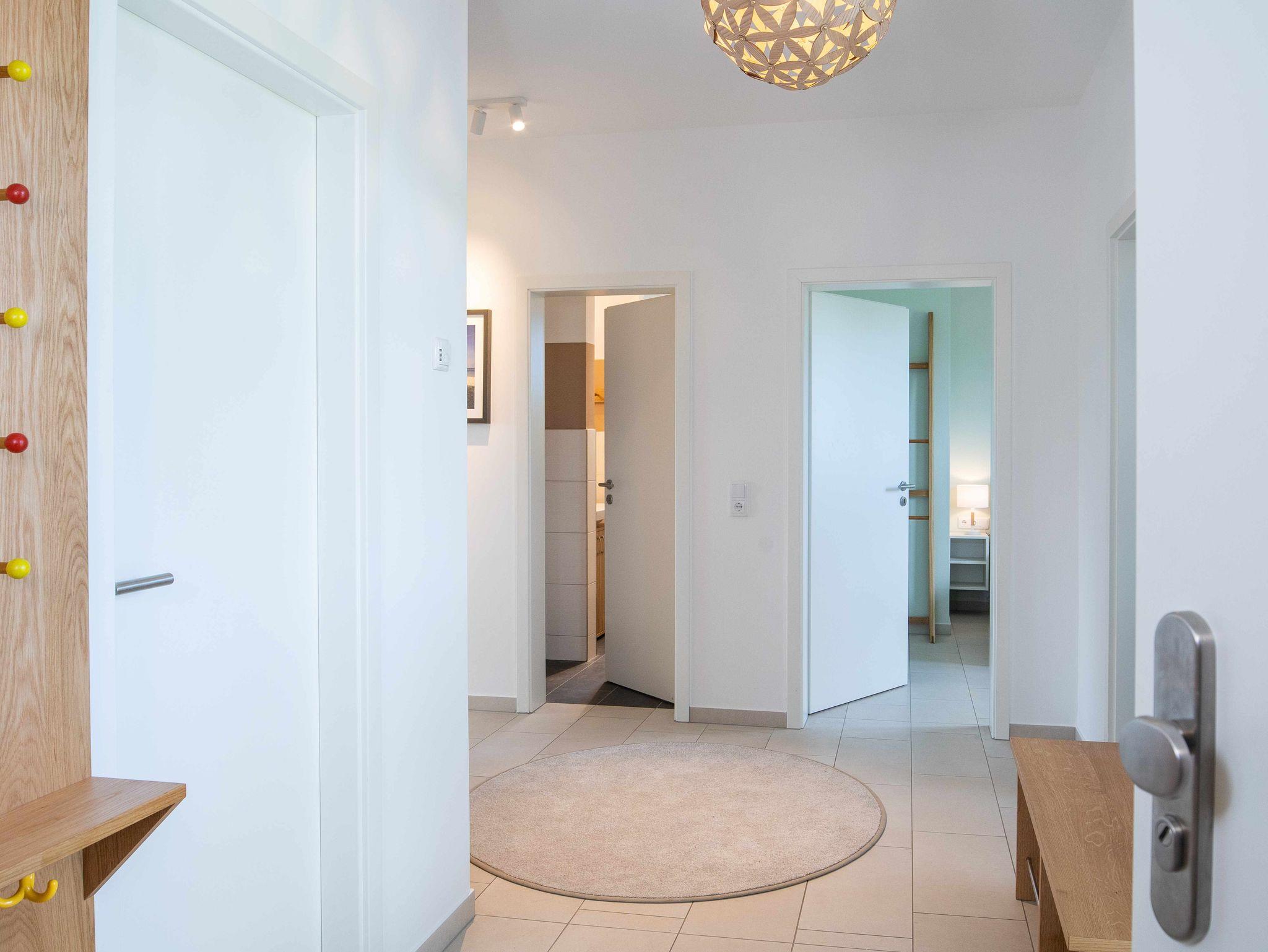 Unsere Ferienwohnung ist großzügig geschnitten und für bis zu 6 Personen geeignet, 1. OG, 90 qm, 2 Schlafzimmer zzgl. Schlafcoach im Wohnzimmer, 2 Balkone, 2 Bäder, Küche
