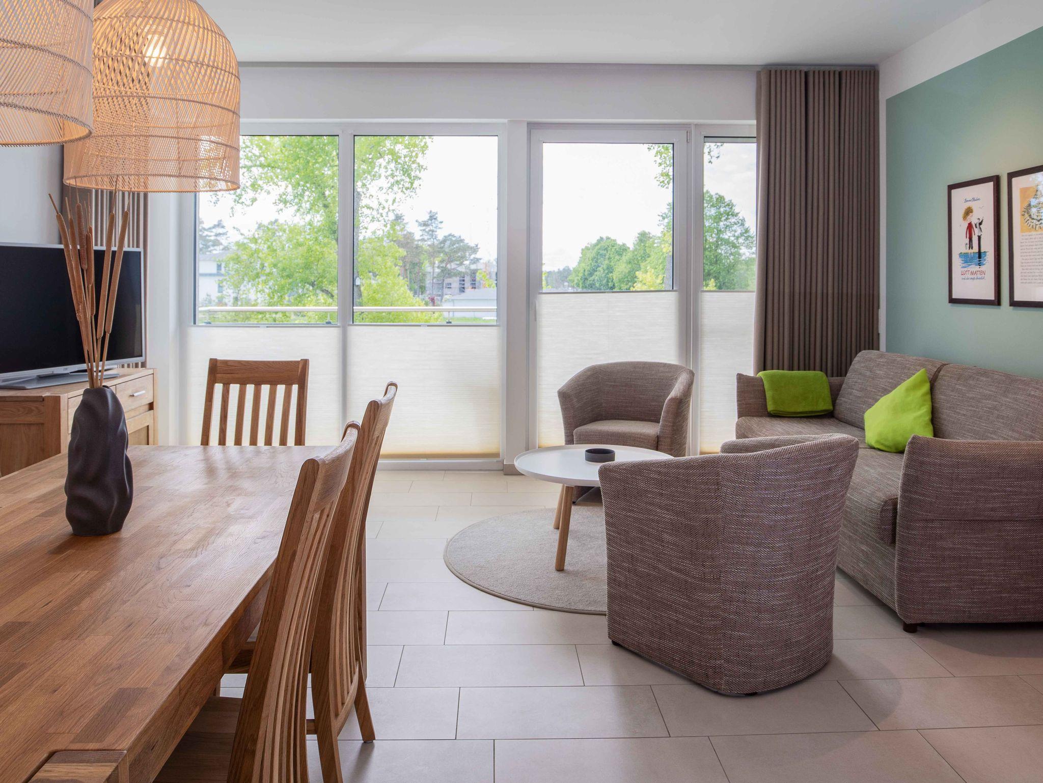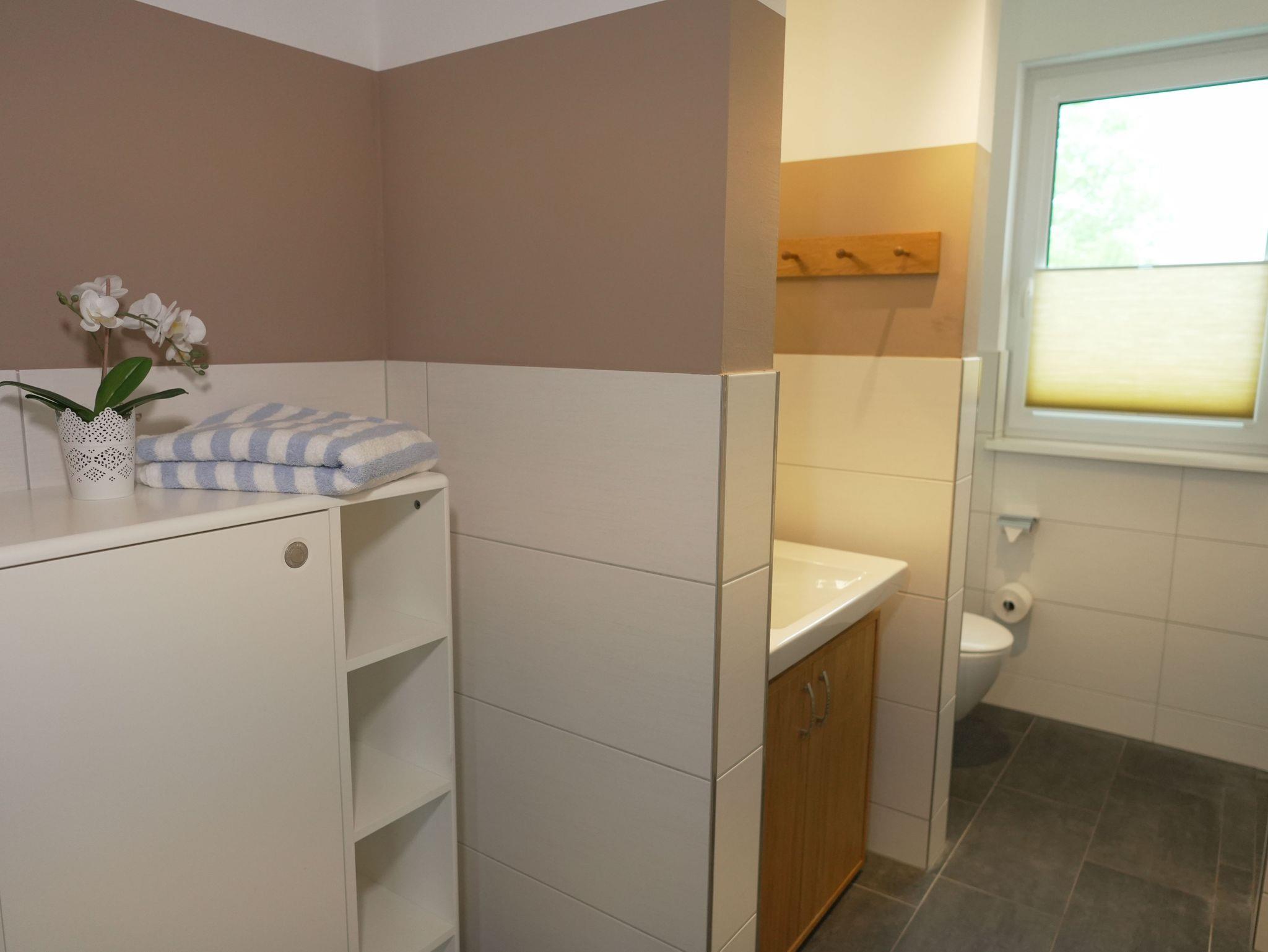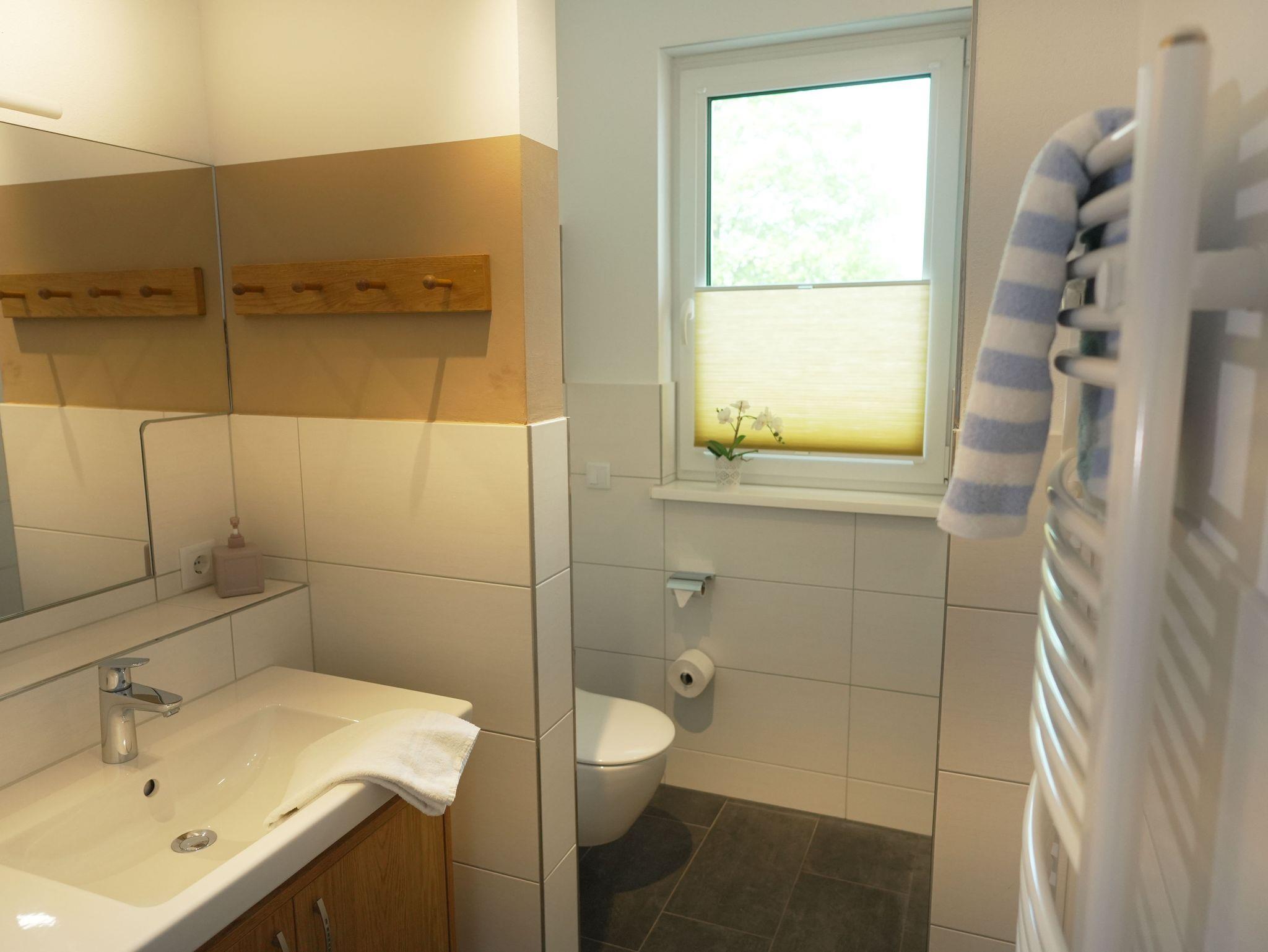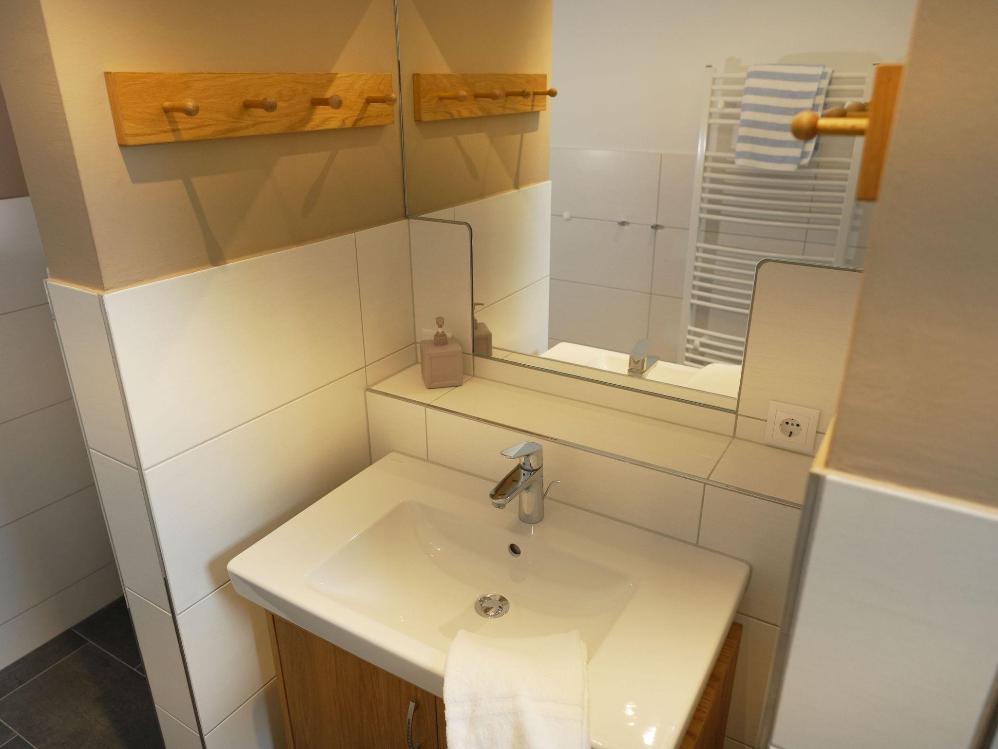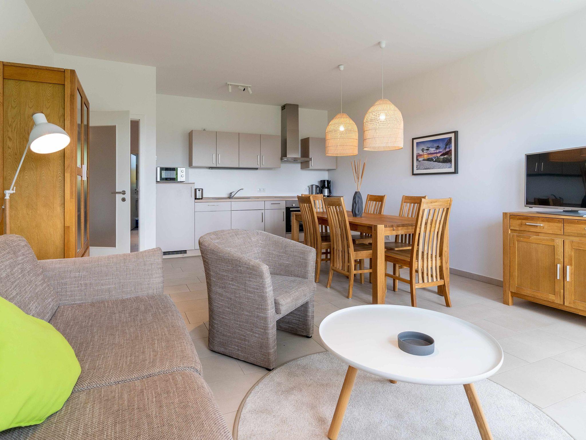 Unsere Ferienwohnung ist großzügig geschnitten und für bis zu 6 Personen geeignet, 1. OG, 90 qm, 2 Schlafzimmer zzgl. Schlafcoach im Wohnzimmer, 2 Balkone, 2 Bäder, Küche