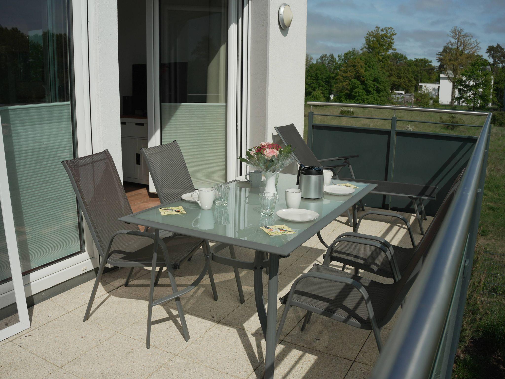 Unsere Ferienwohnung ist großzügig geschnitten und für bis zu 6 Personen geeignet, 1. OG, 80 qm, 2 Schlafzimmer zzgl. Schlafcoach im Wohnzimmer, 2 Balkone, 2 Bäder, Küche