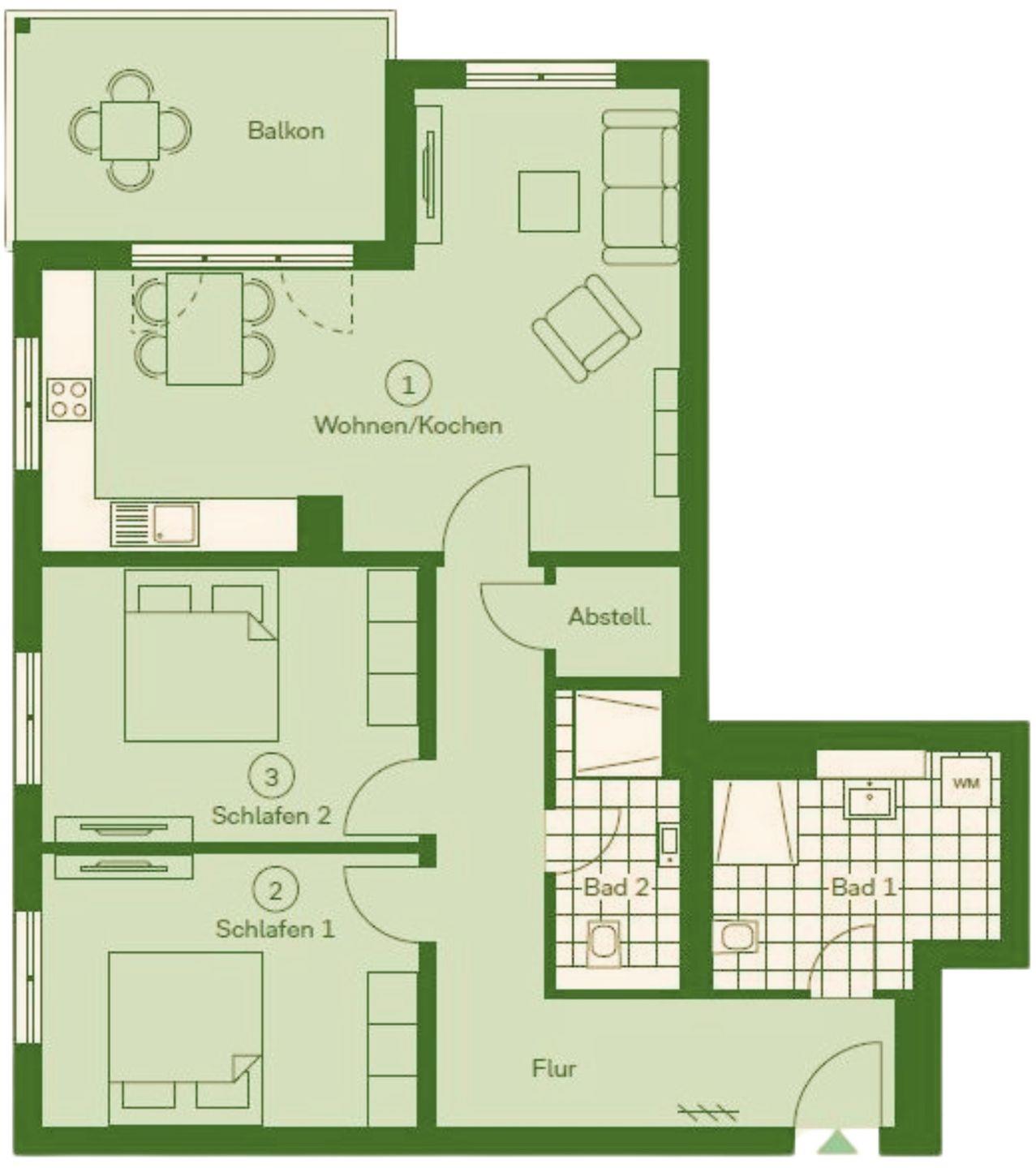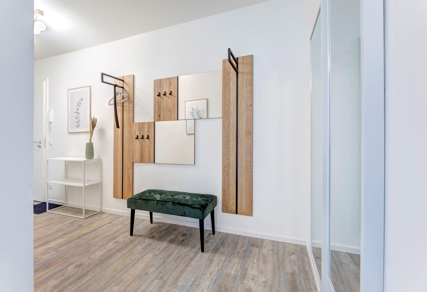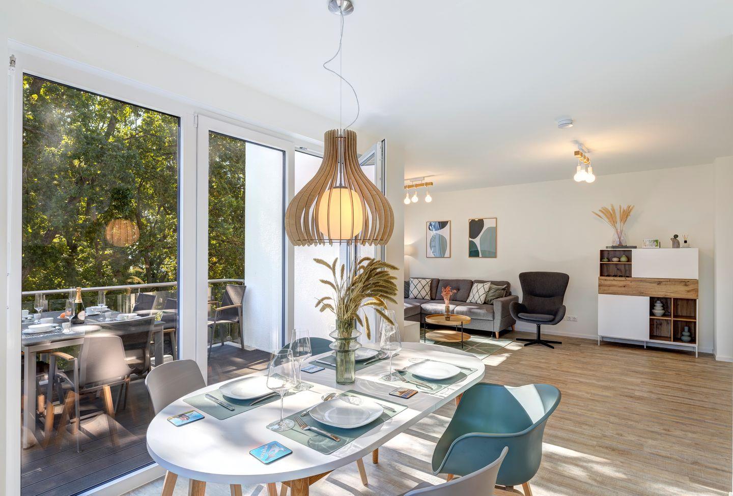 Die Ferienwohnung erstreckt sich über 93 Quadratmeter und bietet Platz für bis zu sechs Gäste.Das Wohnzimmer ist ein Rückzugsort mit bequemer Sofaecke und großen Fenstern.Die voll ausgestattete Küche ermöglicht Ihnen, kulinarische Köstlichkeiten zuzubereiten, die Sie dann auf dem sonnigen Balkon genießen können.Die Schlafzimmer sind ein Ort der Ruhe und Entspannung. Das komfortable Boxspringbett verspricht erholsame Nächte. Die beide Badezimmer sind modern gestaltet, mit einer geräumigen Dusche.