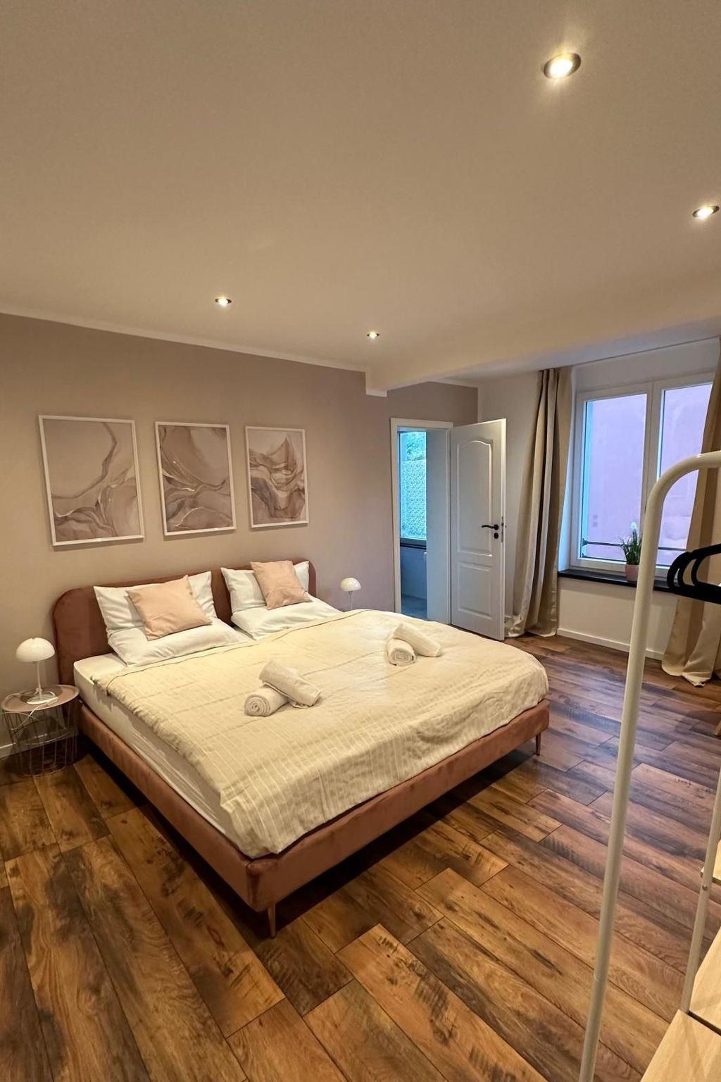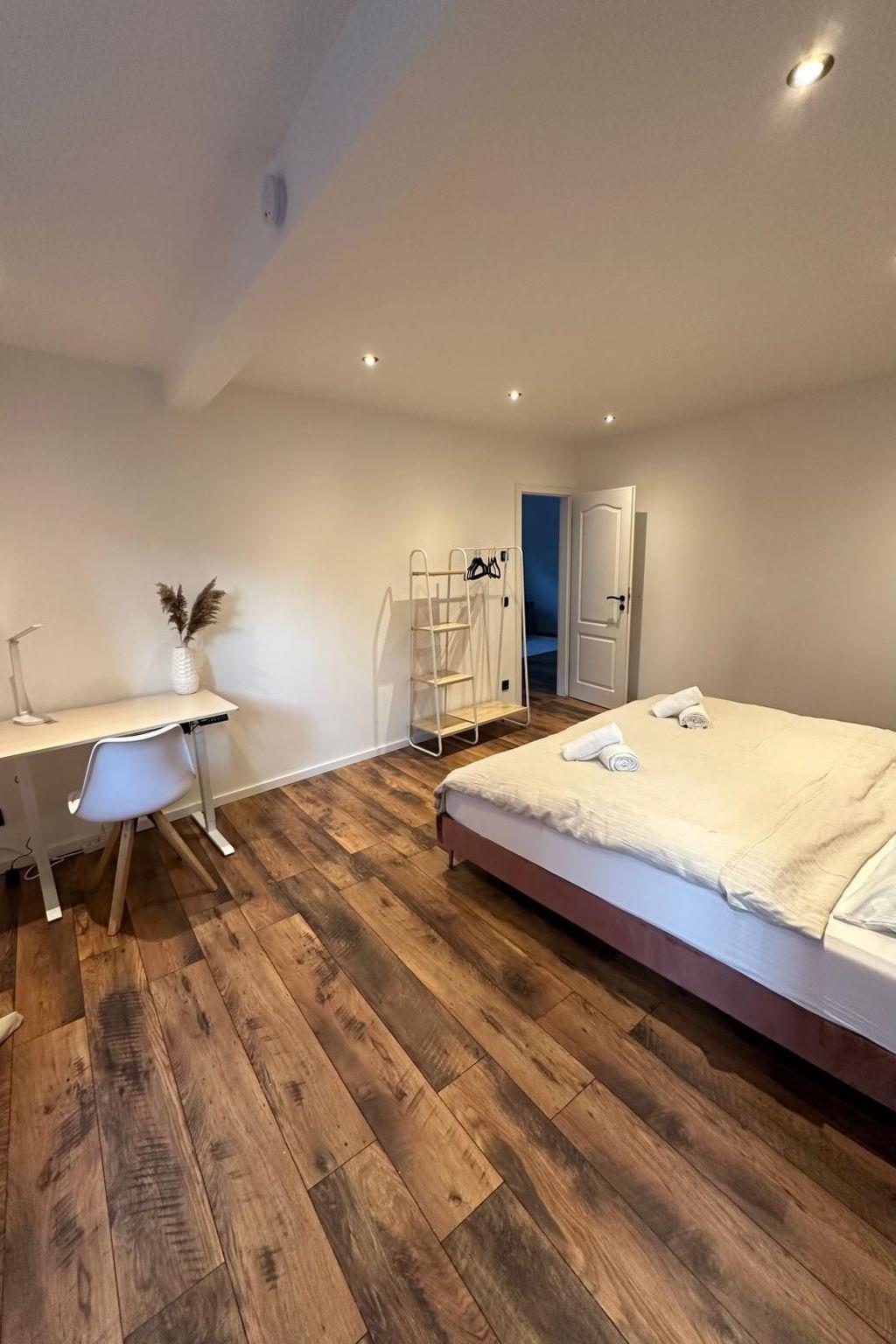The flat is perfectly equipped and has 2 cosy bedrooms, a fully equipped kitchen, a modern bathroom with a separate guest WC, as well as an inviting living area with a sofa bed. An ideal retreat for families or small groups who want to spend a relaxing time in idyllic Gau-Algesheim.