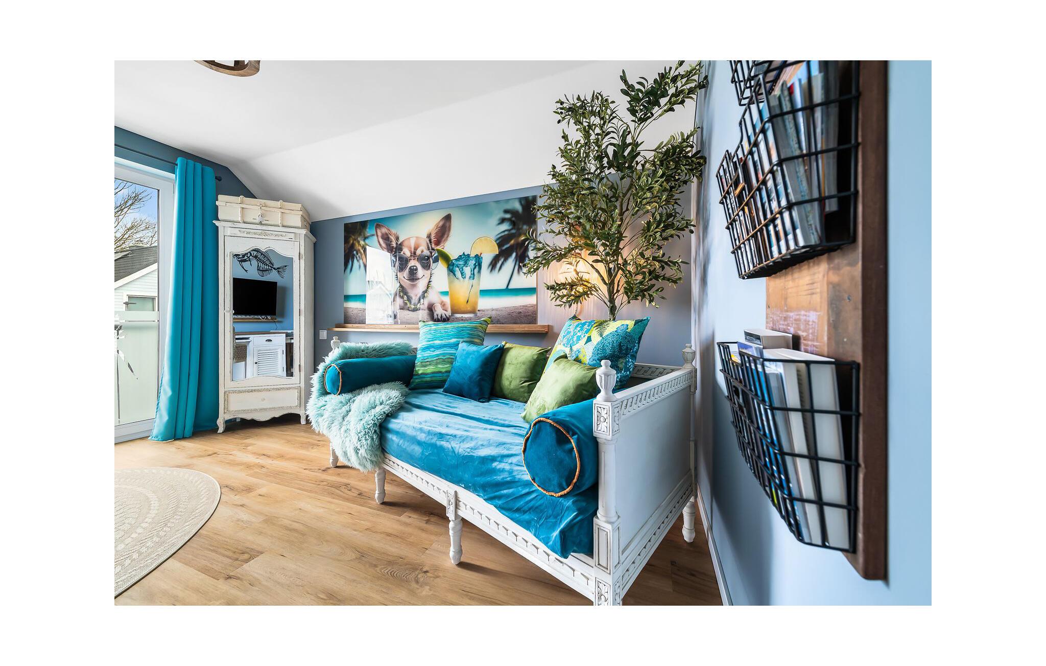Til afslappende nætter er der et soveværelse med en beroligende atmosfære til jeres rådighed, hvor I kan genopleve den forgangne dag i jeres drømme. Den individuelle indretning og den hyggelige opholdsstue i opholds- og spiseafdelingen skaber en afslappet atmosfære og inviterer til afslapning. Ren afslapning!