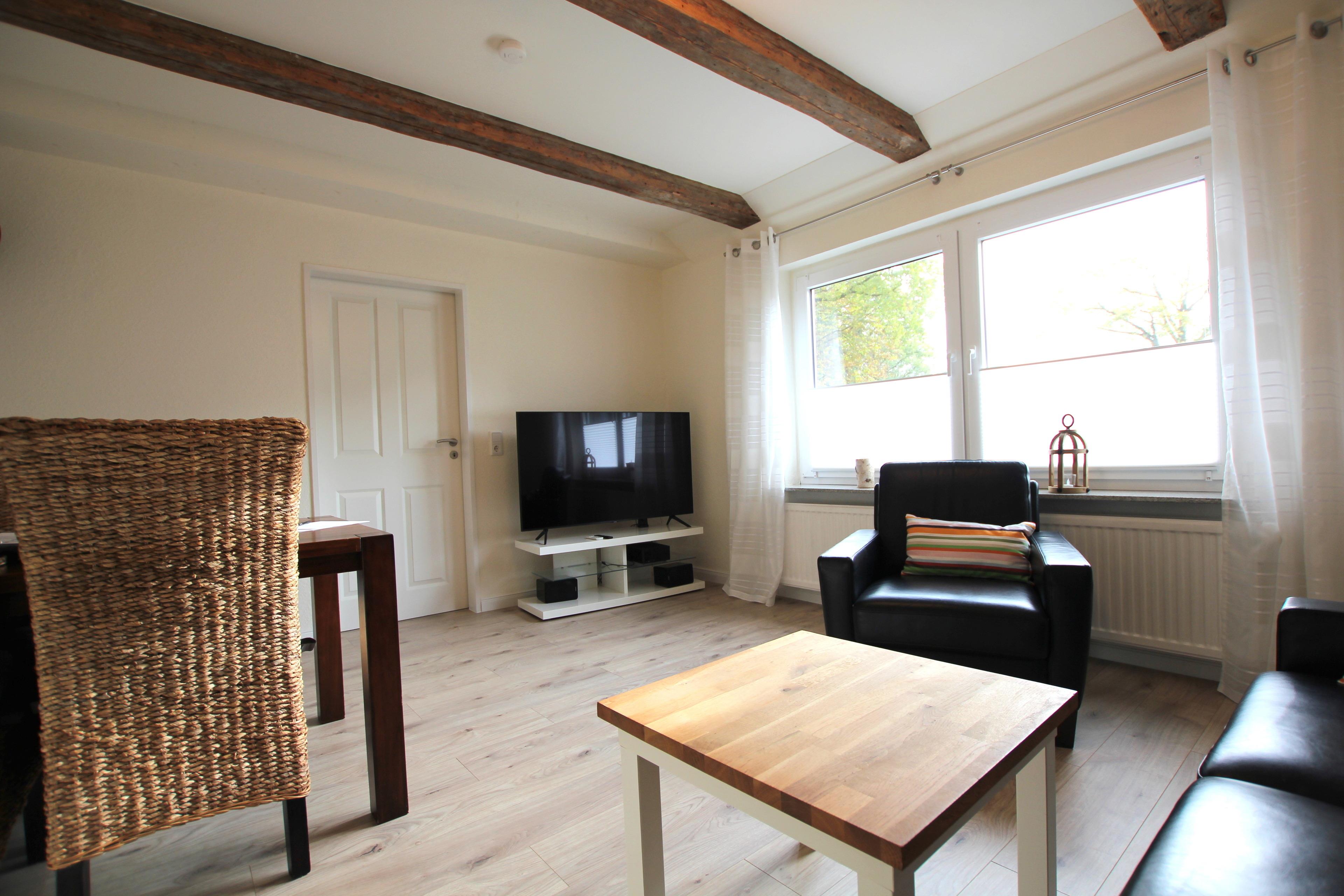 Bad Bederkesa, Cuxhaven, Dorum, Otterndorf, Wremen, Bremerhaven und auch Bremen sind in nur wenigen Autominuten schnell zu erreichen. Das Bauernhaus wurde in den letzten zwei Jahren liebevoll renoviert. Das Hauptschlafzimmer ist mit einem Doppelbett und Sat-TV ausgestattet. Aus dem Koffer brauchen Sie bei uns nicht leben. Wir stellen Ihnen in jedem Schlafzimmer einen Kleiderschrank für Ihre Kleidung zur Verfügung. Im Wohnzimmer lädt eine schöne Ledercouch mit einem Ledersessel und ein Esszimmertisch zum verweilen ein. Ein großer 50" Smart-TV mit allen aktuellen App´s ist ebenfalls vorhanden. Eine große Auswahl an Gesellschaftsspielen lässt auch bei Schlechtwettertagen keine Langeweile aufkommen. Ebenfalls können Sie in der Unterkunft schnelles Internet genießen. Eine voll ausgestattete Küche mit einem modernen Backofen, einer Mikrowelle sowie weiteren elektrischen Geräten und einer gehobenen Grundausstattung lässt keine Wünsche offen. Einer begehbaren Dusche, eine separate Badewanne, ein Waschtisch mit einem Spiegelschrank und einem Hänge-WC bietet alles was ein modernes Bad haben sollte. Ausgedehnte Spaziergänge in die Natur ist in unmittelbarer Umgebung möglich. Geschäfte für den täglichen Bedarf sind in ca. 5 Autominuten im nächsten Ort zu erreichen. Ein kostenloser Parkplatz, sowie W-LAN steht unseren Feriengästen direkt am Haus zur Verfügung. Bettwäsche und Handtücher sind bereits im Preis enthalten. Eine Waschmaschine steht Ihnen gegen eine Gebühr pro Waschgang zur Verfügung.