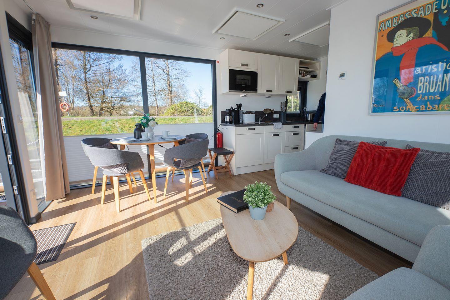 Urlaub auf dem festliegenden Hausboot – führerscheinfrei, ruhig, komfortabel.