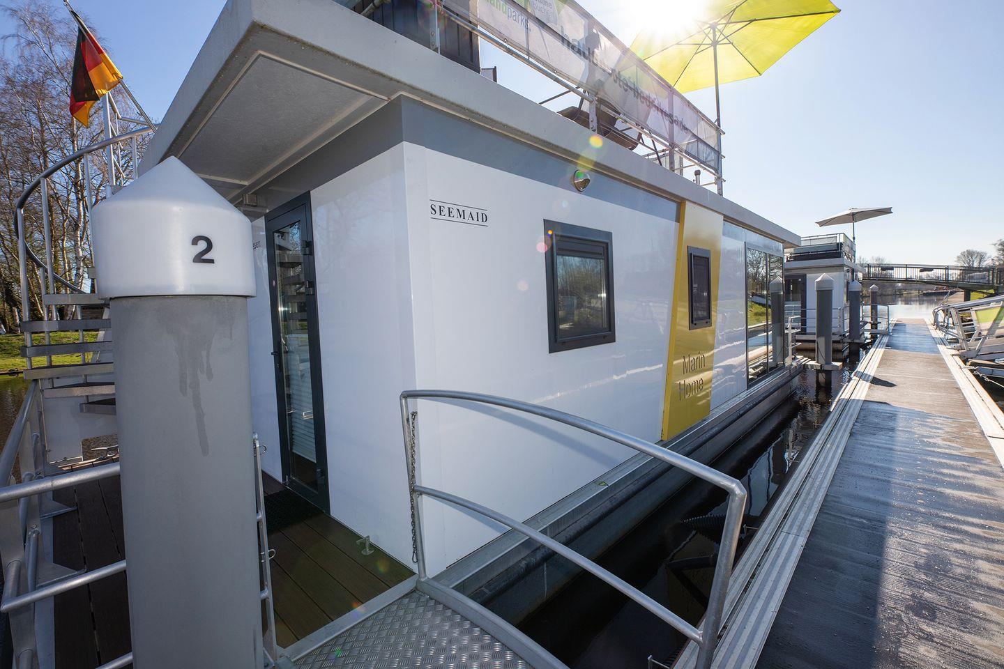 In Bad Bederkesa liegt unser schwimmendes Ferienhaus ruhig verankert in der Marina am See. Mit 50?m² Wohnfläche, zwei Schlafzimmern, voll ausgestatteter Küche, Kaminofen und großer Dachterrasse bietet es alles für einen entspannten Aufenthalt auf dem Wasser.