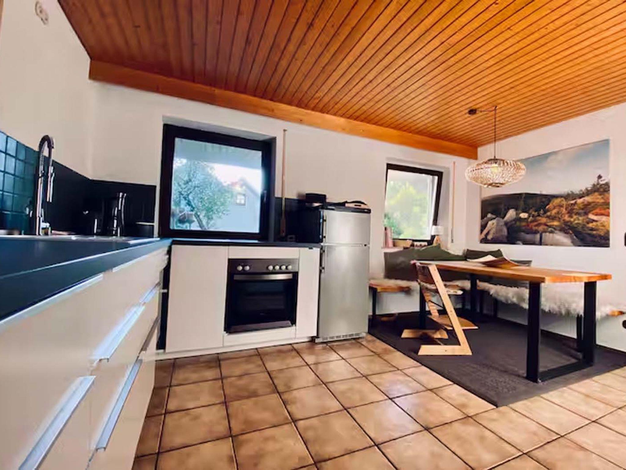 Euer Apartment KUNO liegt idyllisch am Dorfesrand im Fichtelgebirge und bietet eine ruhige Auszeit inmitten der Natur. Von hier aus könnt ihr direkt mit dem Mountainbike starten oder die umliegenden Wanderwege erkunden. Die großzügige Terrasse mit direktem Zugang zum schönen Garten und Blick auf einen kleinen Naturweiher lädt zum Entspannen ein. Das Apartment ist ideal für Paare, Freunde und Familien, die fernab vom Alltag gemeinsame Zeit verbringen möchten. Kuschelige Abende vor dem Kachelofen oder laue Sommernächte auf der Terrasse machen euren Aufenthalt unvergesslich. Die Ausstattung umfasst ein Schlafzimmer mit Boxspring-Doppelbett und ausziehbarem Bett, einen Wohnbereich mit Schlafcouch und Smart TV sowie eine moderne Wohnküche. Das Badezimmer bietet eine Badewanne mit integrierter Dusche. Fußbodenheizung und schnelles WLAN sind ebenfalls verfügbar und die ruhige Umgebung sorgt für Erholung pur.