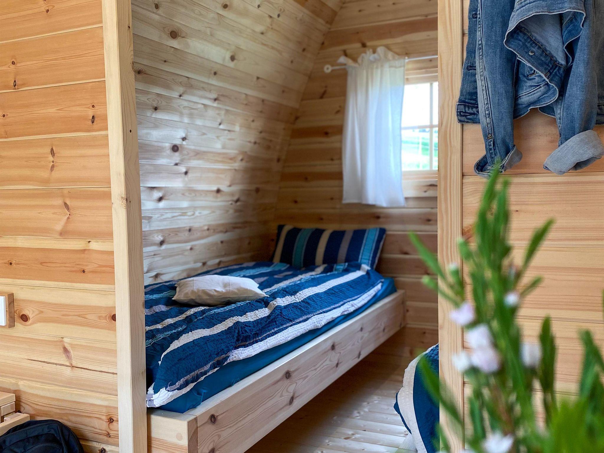 In fast unberührter Natur wird der Aufenthalt in den 4,8 m langen und 2,4 m breiten Campingpods zu einem außergewöhnlichen Erlebnis. Insgesamt finden bis zu drei Personen in einem der beiden Campingpods Platz. Im hinteren Bereich der Unterkunft befinden sich zwei Einzelbetten (jeweils 80 x 200), die nach einem erlebnisreichen Tag einen exzellenten Schlafkomfort bieten. Der Aufenthaltsbereich im vorderen Bereich des Campingpods bietet mit einer kleinen Sitzecke, bestehend aus einem Tisch und zwei Sitzhockern sowie einer Sitzbank, welche als dritte Schlafmöglichkeit umfunktioniert werden kann, ausreichend Platz. Die Pods in uriger Bogenbauweise sind mit Licht, Steckdosen und einer Infrarotheizung ausgestattet. Zusätzlich steht im Außenbereich eine Sitzbank zur Verfügung, um den herrlichen Ausblick zu genießen.