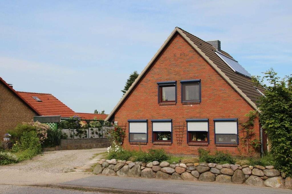 Die Ferienwohnung 3 liegt zu ebener Erde im Nebengebäude auf einem ca. 4800 m² großen Grundstück, wovon über 2.000m² als Spielwiese zur Verfügung stehen. Direkt hinter dem Grundstück verläuft ein ca. 3 Kilometer langer Rundwanderweg entlang der Felder, der sogar zwei Spender für Hundetüten hat. Ferienwohnung 3 (ca. 50m²) Wohnschlafraum, Schlafraum, Küche, teil überdachte Terrasse. Im Wohnschlafraum der Wohnung steht ein hochwertiges Schrankdoppelbett. LCD Flachbildschirm mit Sat-Anschluss. Moderne Einbauküche (Heißluftherd mit Ceranfeld, Wasserkocher, Kaffeemaschine, Geschirrspüler, Mikrowelle, Toaster und Kühlschrank mit 3 Sterne Gefrierfach). Sowohl vom Wohn-/Schlafraum, wie auch vom Schlafraum besteht Zugang auf die teilüberdachte Terrasse.