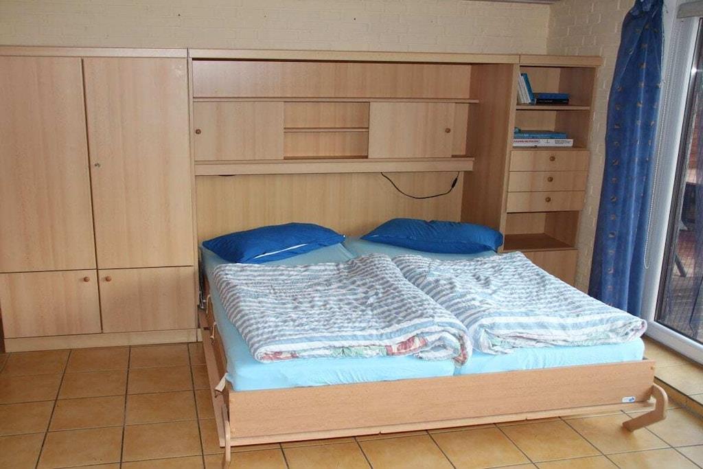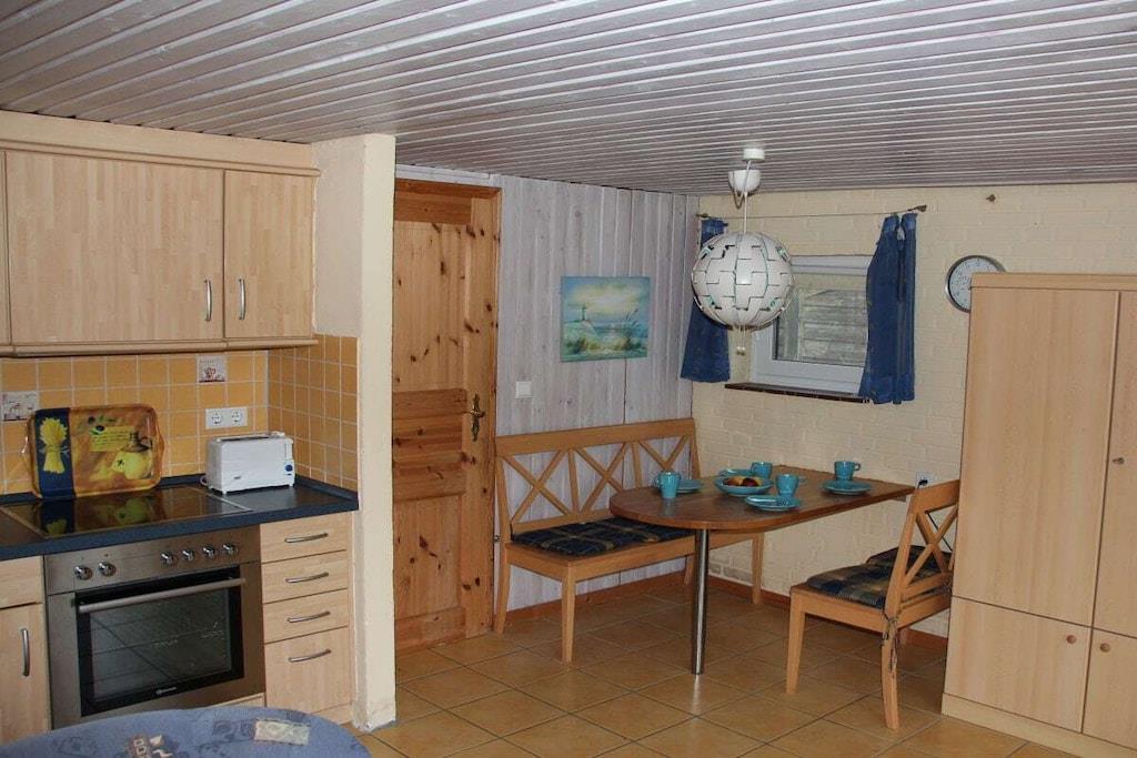 Die Ferienwohnung liegt auf einem ca. 4800 m² großen Grundstück, wovon gut 2.500m² als Spielwiese zur Verfügung stehen. Wohnung 2 (ca. 45 m²) großer Wohnschlafraum mit Essecke und Einbauküche. Kleiner Schlafraum, große Fensterfront zum Garten. Im Wohnschlafraum steht ein hochwertiges Schrankdoppelbett von Nele. Moderne Einbauküche (Heißluftherd mit Ceranfeld, Wasserkocher, Kaffeemaschine, Geschirrspüler, Mikrowelle, Toaster und Kühlschrank mit 3 Sterne Gefrierfach). Die Ferienwohnung hat eine teilüberdachte Terrasse, von der man Zugang zur Spielwiese, dem Spieleraum und auch dem überdachtem Grillplatz hat.