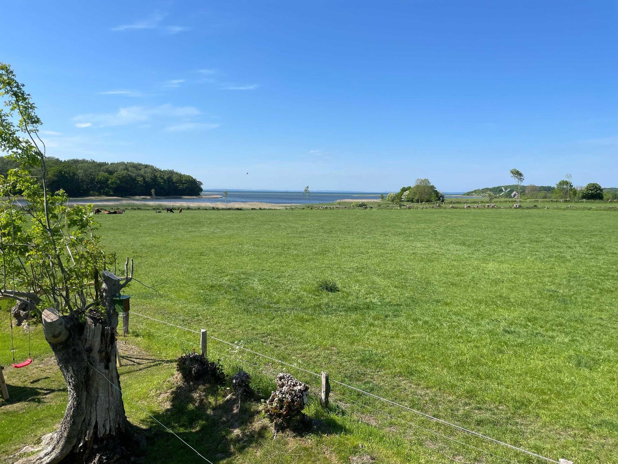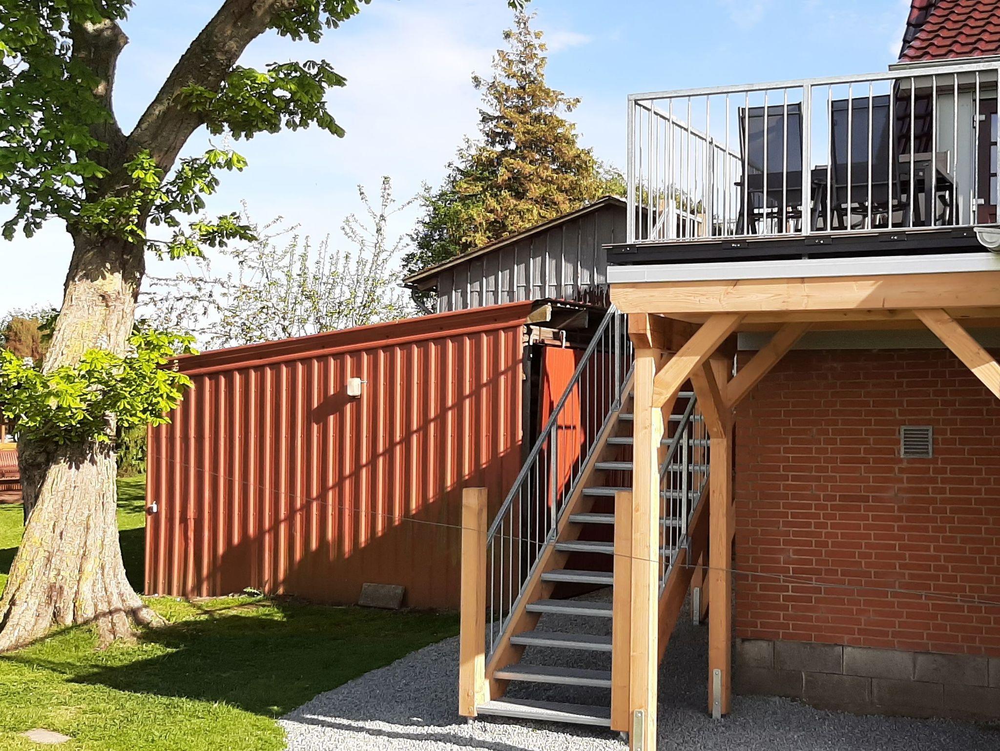 Um die Sonne in vollen Zügen genießen zu können, befindet sich vor der Eingangstür ein großer Balkon mit Sitzmöglichkeiten. Von dem Balkon haben Sie einen wunderschönen Blick auf das Geltinger-Noor, die Mühle Charlotte von der Geltinger Birk und den Sonnenuntergang.