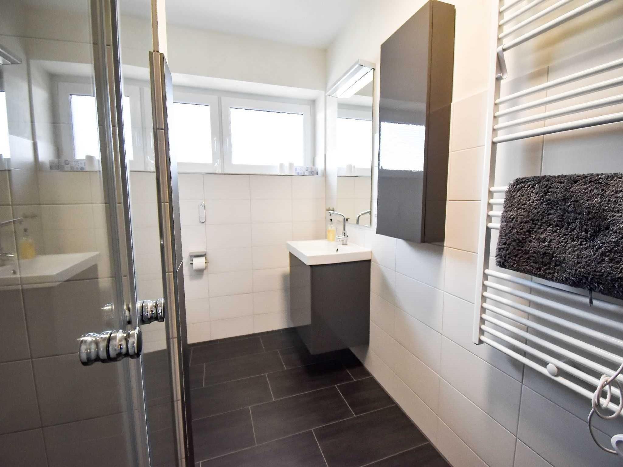 - Duschbad mit Regendusche, bodengleichem Einstieg und Handtuchwärmer; Waschtrockner;