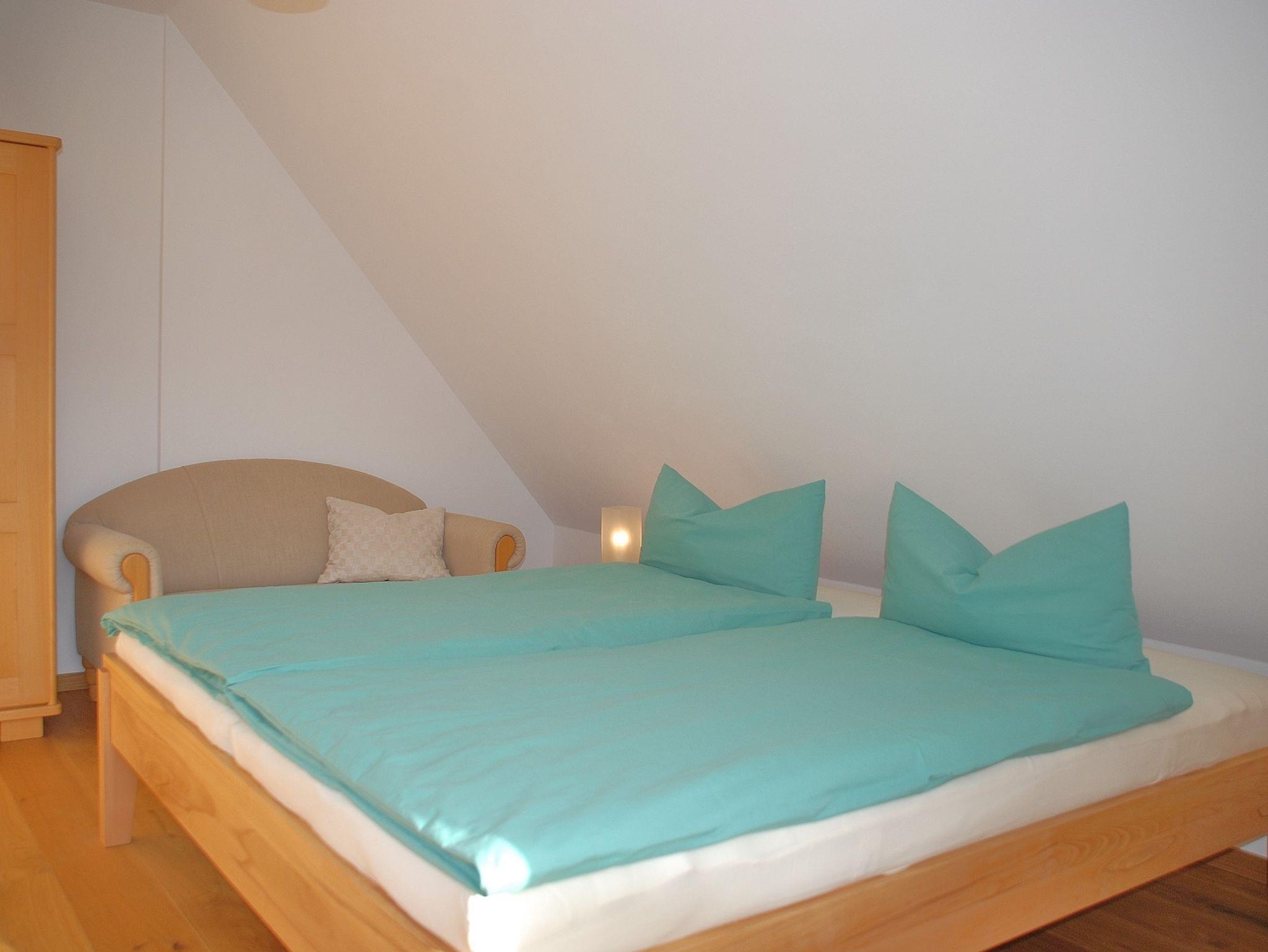 Das Passivhaus steht für hohen Wohnkomfort, frische Luft in allen Wohnräumen, Schimmelfreiheit und hohe Umweltfreundlichkeit. Unser Haus ist Gewinner des Architektenwettbewerbs in Bayern 2018. Die neue, helle Ferienwohnung (2017, 68 m²) mit eigenem Zugang, großer Dachterrasse und tollem Ausblick befindet sich im Obergeschoss. Sie ist Teil eines Passivhauses und verfügt über ein Lüftungssystem, damit stets Frischluft vorhanden ist. Die Unterkunft ist aufgeteilt in Flur, Bad, zwei Schlafzimmer und Wohn- Essraum. Die Räume sind mit Natursteinfliesen, Eichenfußböden und Massivholztüren ausgestattet. Die Einrichtung besteht aus modernen Naturholzmöbeln. Im Wohnbereich befindet sich eine komplette Küchenzeile mit Esstisch und Stühlen nebst Polstermöbeln, TV-SAT und Radio. Ein Schlafzimmer beinhaltet ein Doppelbett, Kleiderschrank und ein Sofa. Das Einzelzimmer hat Bett und Kleiderschrank. Die Dusche im Bad ist ebenerdig. Die Ferienwohnung besitzt eine Fußbodenheizung. Ein Baby-Kleinkinderzustellbett, eine Wickelauflage und ein Hochstuhl sind in der Wohnung vorhanden. Im Haus keine Straßenschuhe. Bitte Hausschuhe mitbringen. Danke!