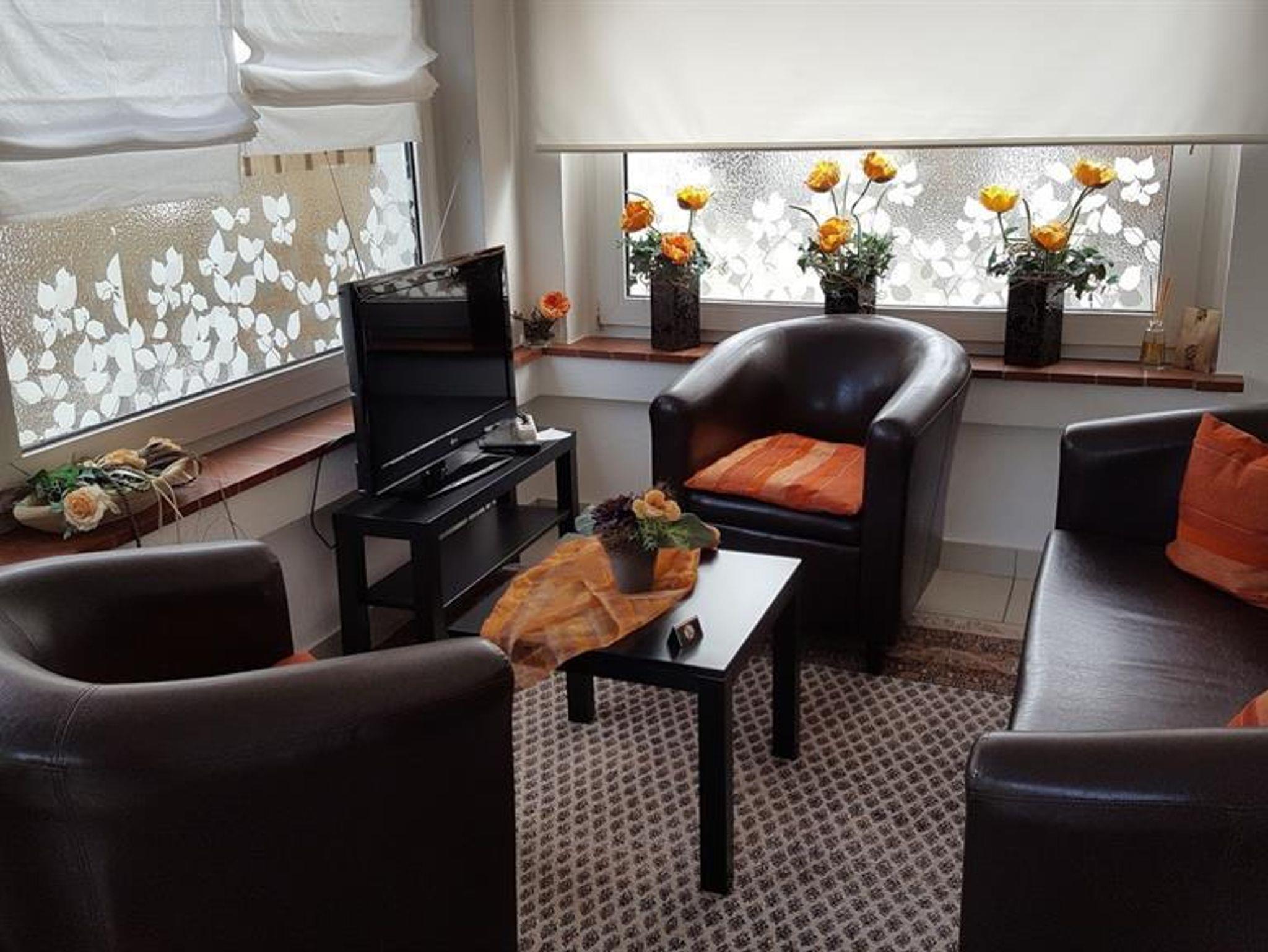 1 Wohnzimmer mit TV, Schreibtisch, Fernsehsessel