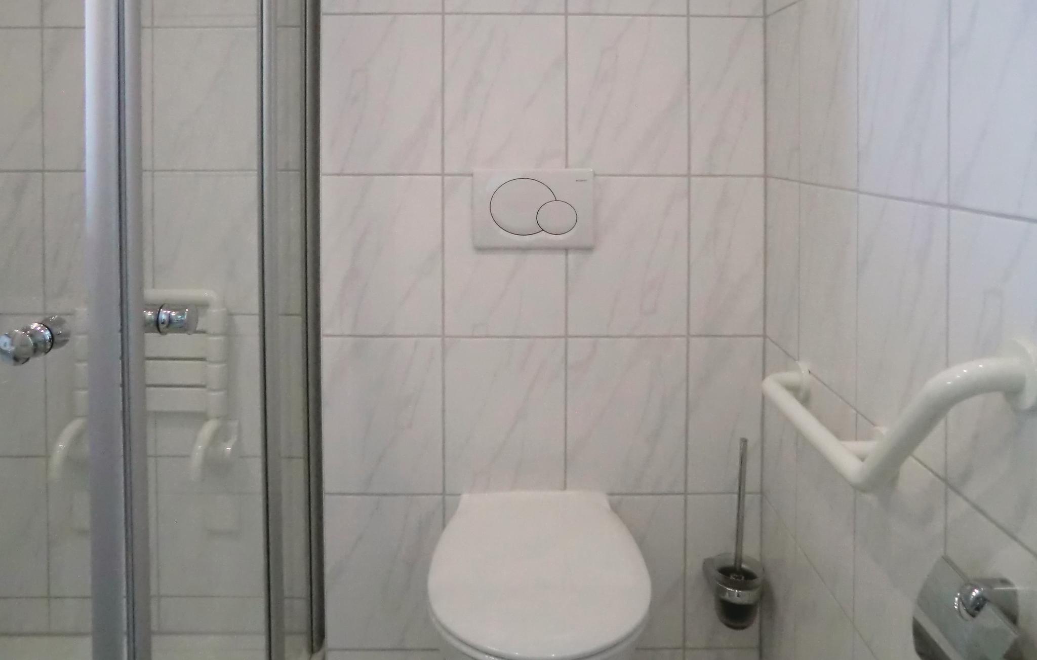 Fra entréen til dette halve dobbelthus kommer I ind i en rummelig gang med brændeovn og tilstødende opbevaringsrum. Stuen i samme etage har gennemgang til spisestuen, hvorfra I kommer videre til køkkenet med træpilleovn. Nederst er der også badeværelse med kar og soveværelse med egen bruser. Ligesom stueetagen kan dette soveværelse nås i kørestol. Bruseren her er udstyret med et foldesæde og toilettet med en stang. Sengen er dog ikke tilpasset. Over for huset er der en lille eng med træbænke. I må gerne sætte jer ud i haven, hvor der også er en strandkurvestol og en plæne med bekvemme havemøbler.
