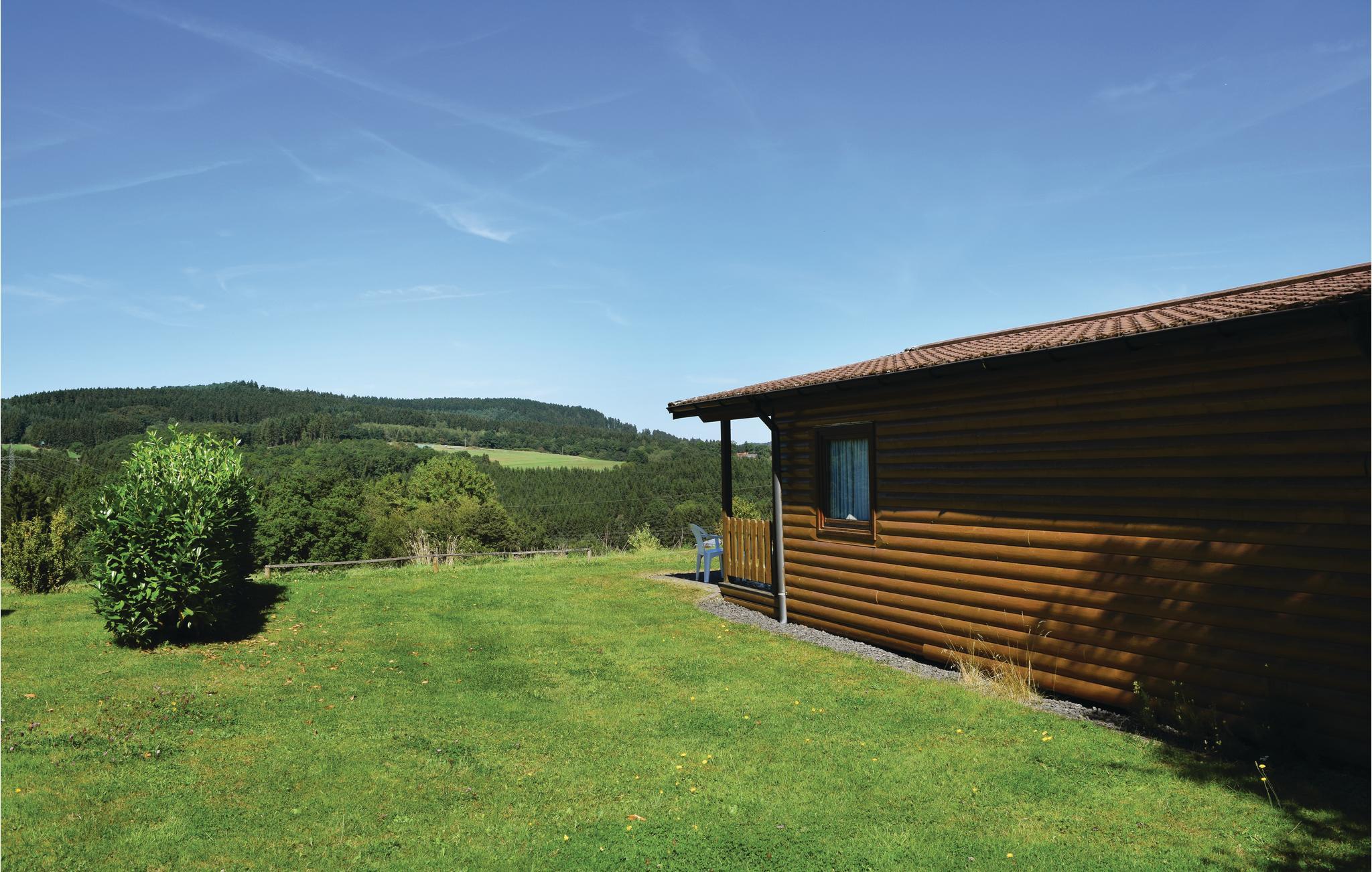 Dette fritstående feriehus med have og stor terrasse ligger i Gerolsteins skovferiepark midt ude i Eifelområdets skove. Ferieparken består af flere bungalows beliggende i byens udkant. Huset har to soveværelser med dobbeltsenge og en dejlighave med terrasse.