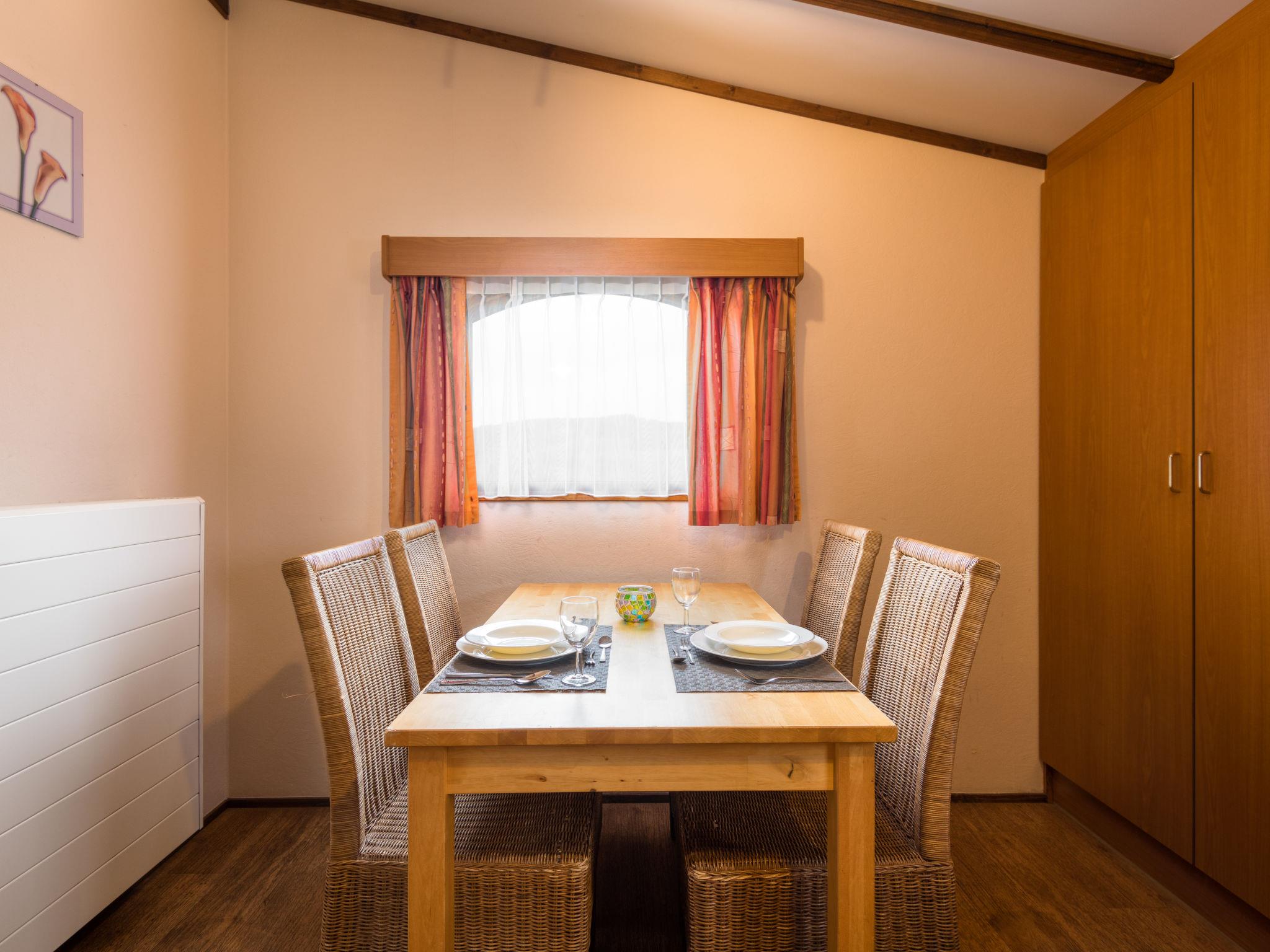 Resort "Waldferienpark Gerolstein". Outside the resort, 3 km from the centre of Gerolstein, in a secluded, quiet position on top of a hill, 100 m from the edge of the forest, 24 km from the lake, 100 m from the stream, in the countryside. For shared use: indoor pool heated (70 m2, depth 130 cm) with internal staircase. Shower/WC in the pool area, children's playground (slide, swing, sandbox), petting farm. Private: garden with lawn. In the complex: restaurant, bar, breakfast room, lounge, billiard table, trampoline, sun terrace. Bread roll service possible (extra). Stepped path to the house. Parking on the premises. Shop 3 km, grocery 2.5 km, supermarket 2.5 km, shopping centre 3 km, bicycle rental 6 km, bus stop "Gerolstein" 3 km, railway station "Gerolstein" 3 km, outdoor swimming pool 3 km, bathing lake 3.2 km. Golf course (18 hole) 18 km, tennis 3 km, minigolf 50 m, riding stable 4 km, walking paths from the house 50 m. Nearby attractions: Kylltal, Burg Eltz. Well-known lakes can easily be reached: Pulvermaar 24 km. Please note: car recommended. The forest holiday park also has air hockey and outdoor chess. Facilities for shared use (some extra). Wood for the fireplace in the properties can be purchased at reception for an additional charge.