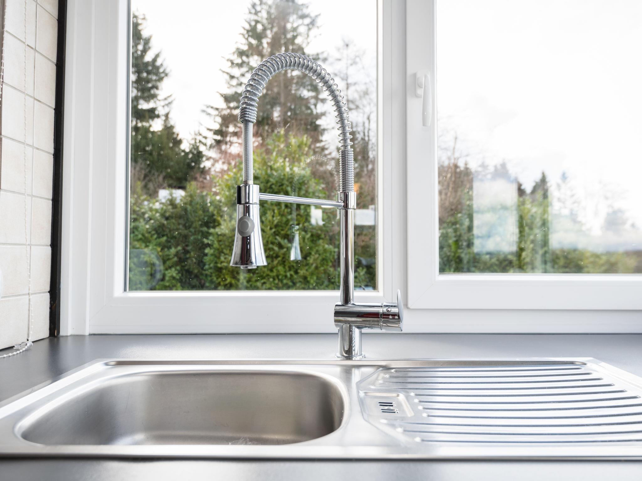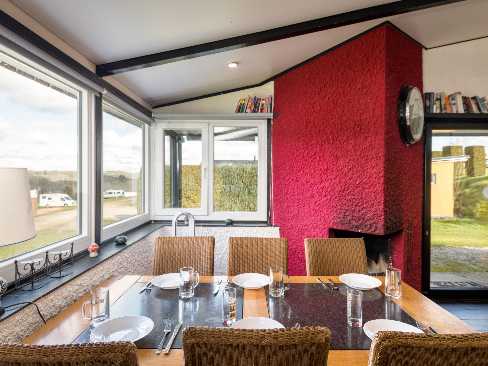 Resort "Waldferienpark Gerolstein". Outside the resort, 3 km from the centre of Gerolstein, in a secluded, quiet position on top of a hill, 100 m from the edge of the forest, 24 km from the lake, 100 m from the stream, in the countryside. For shared use: indoor pool heated (70 m2, depth 130 cm) with internal staircase. Shower/WC in the pool area, children's playground (slide, swing, sandbox), petting farm. Private: garden with lawn. In the complex: restaurant, bar, breakfast room, lounge, billiard table, trampoline, sun terrace. Bread roll service possible (extra). Stepped path to the house. Parking on the premises. Shop 3 km, grocery 2.5 km, supermarket 2.5 km, shopping centre 3 km, bicycle rental 6 km, bus stop "Gerolstein" 3 km, railway station "Gerolstein" 3 km, outdoor swimming pool 3 km, bathing lake 3.2 km. Golf course (18 hole) 18 km, tennis 3 km, minigolf 50 m, riding stable 4 km, walking paths from the house 50 m. Nearby attractions: Kylltal, Burg Eltz. Well-known lakes can easily be reached: Pulvermaar 24 km. Please note: car recommended. The forest holiday park also has air hockey and outdoor chess. Facilities for shared use (some extra). Wood for the fireplace in the properties can be purchased at reception for an additional charge.