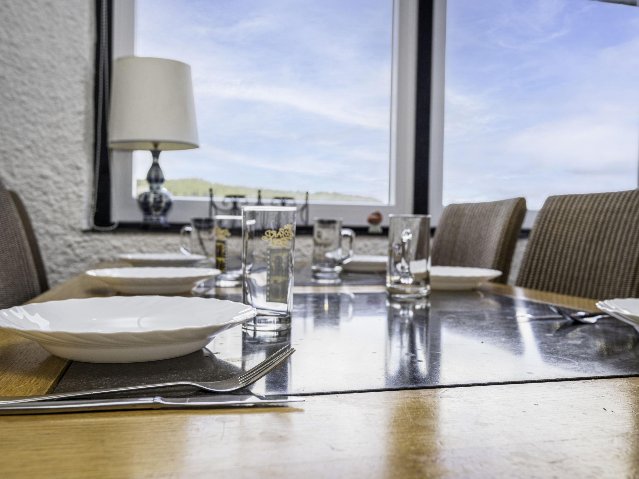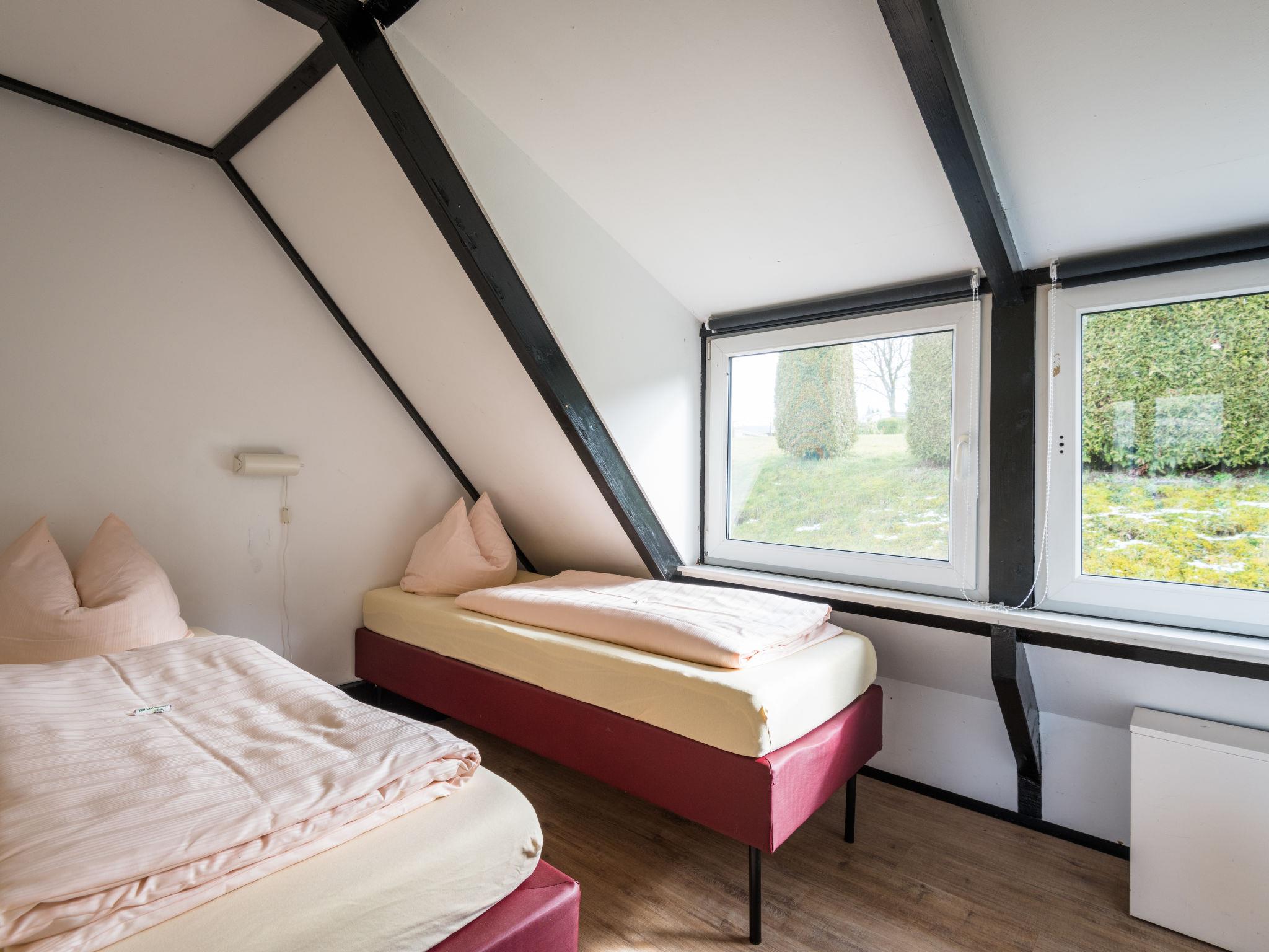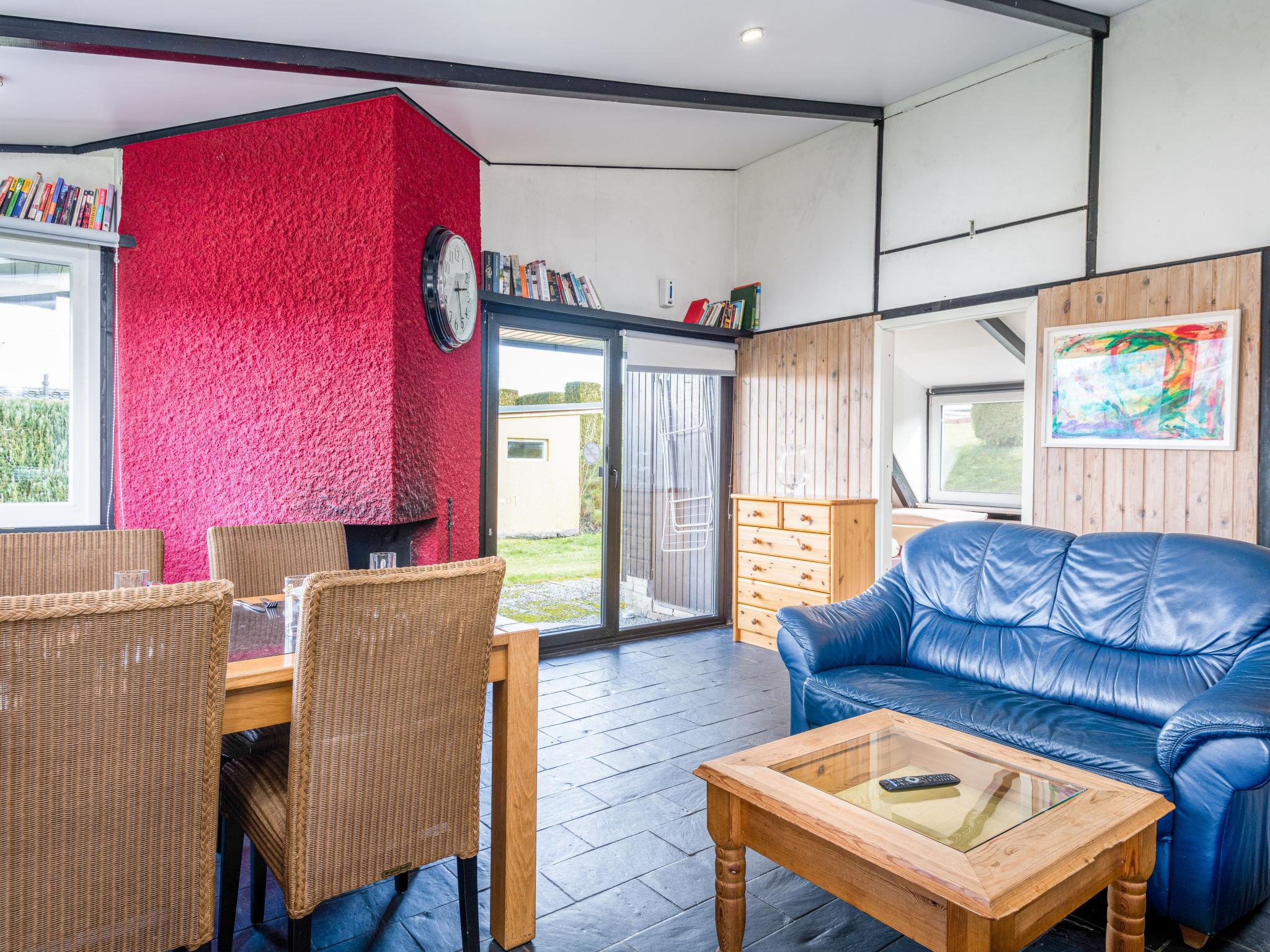 "Haus 30", 4-room bungalow 60 m2. Partly with sloping ceilings, cosy furnishings: living/dining room 30 m2 with open-hearth fireplace and satellite TV (flat screen). Exit to the terrace. 1 room 9 m2 with 1 double bed (160 cm, length 190 cm). 2 rooms 6 m2, each room with 2 beds (80 cm, length 190 cm). Kitchenette 5 m2 (4 hot plates, dishwasher, microwave, electric coffee machine). Shower/WC. Electric heating. Terrace 20 m2 partly roofed. Terrace furniture. Facilities: baby cot (extra), logs (extra). Please note: non-smoking house. Maximum 2 pets/ dogs allowed. Smoke alarm, fire extinguisher. This has an open outdoor fireplace.
