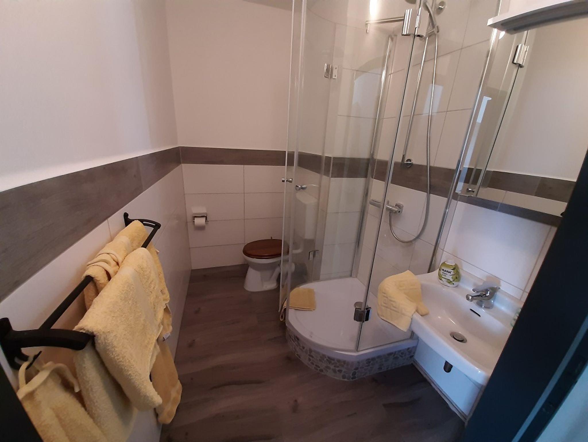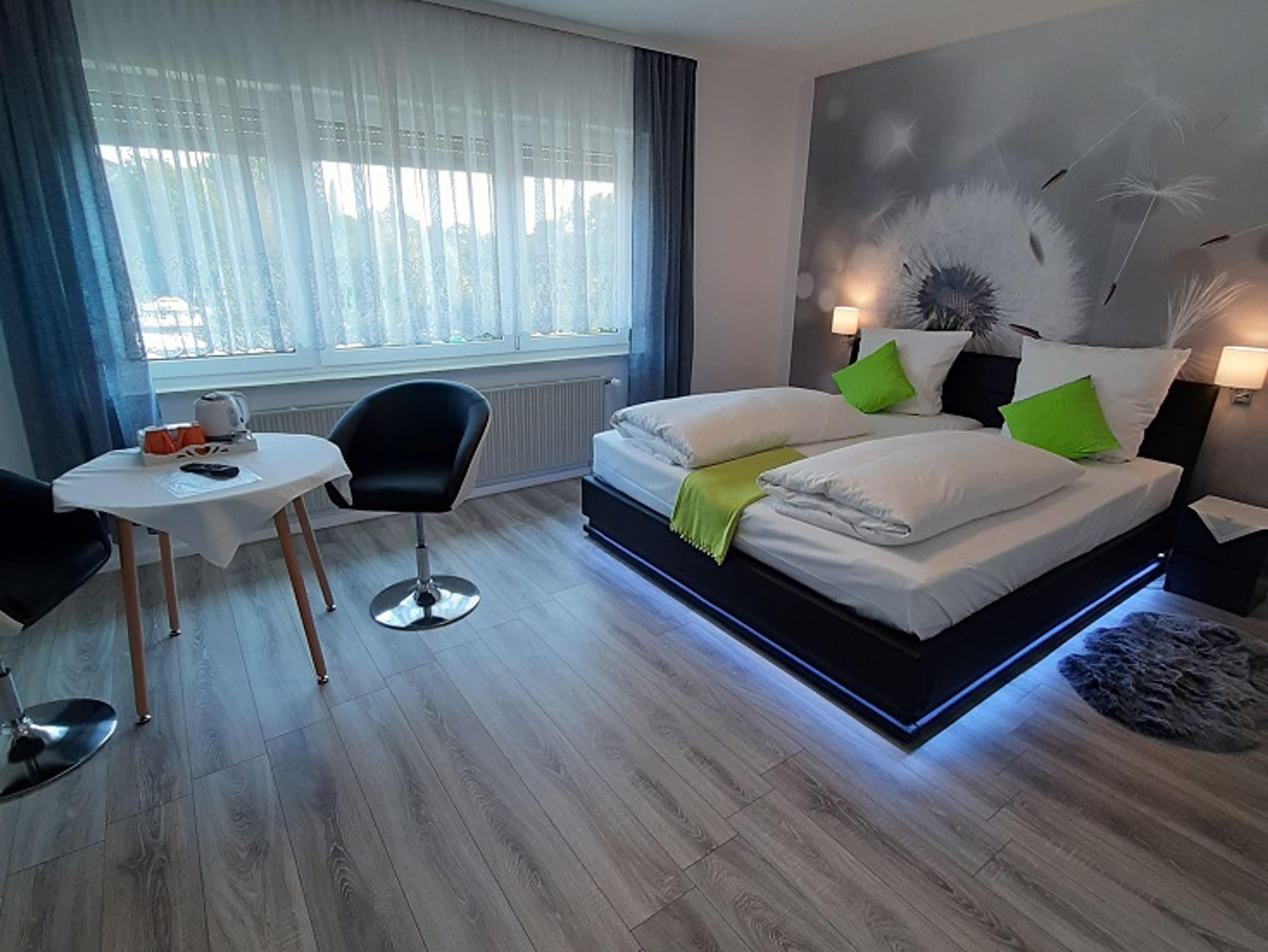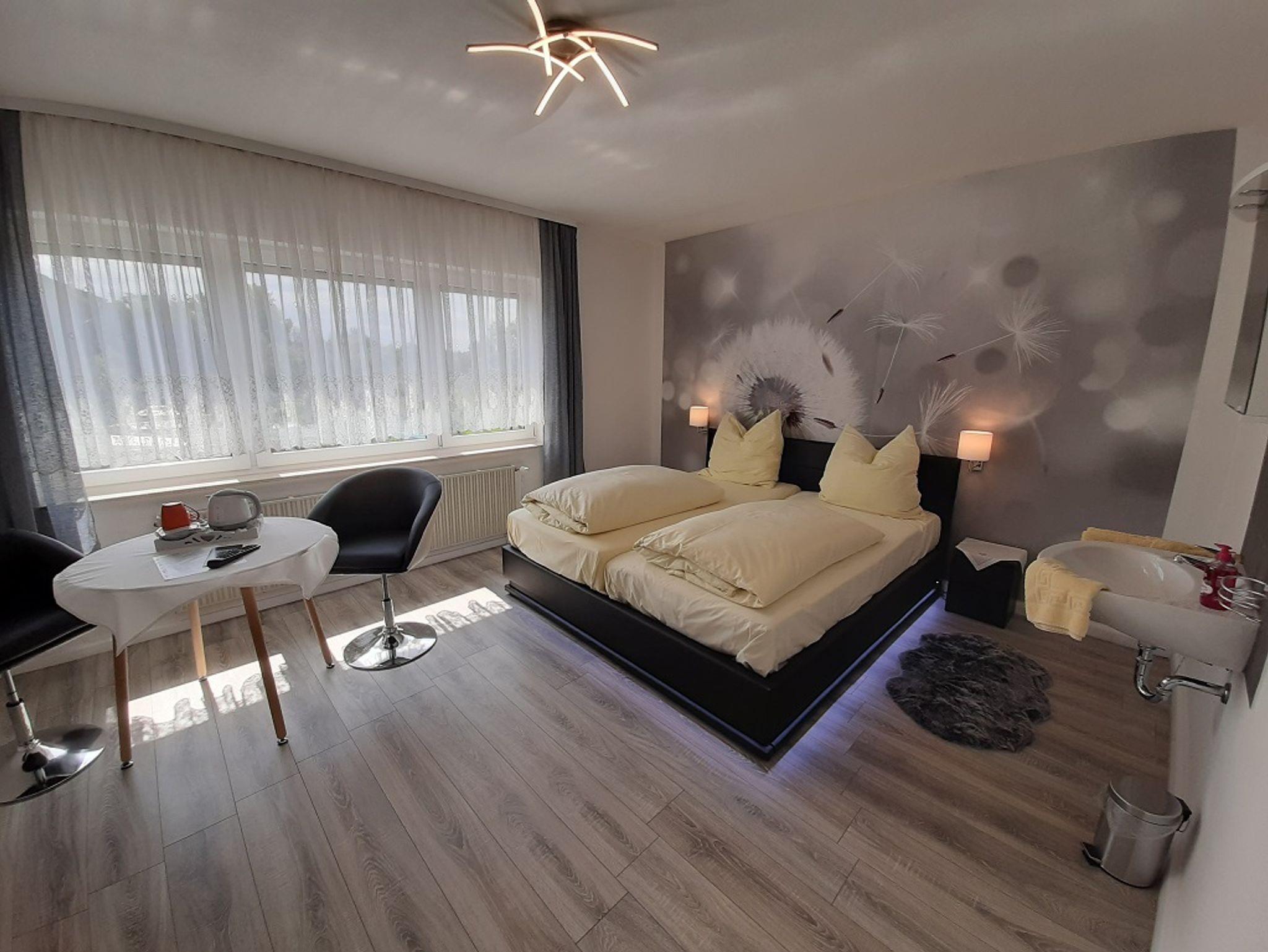 Jedes Zimmer verfügt bei uns über Dusche und WC, W-Lan, einen Flachbildfernseher, Sitzmöglichkeiten, teilweise einen Balkon und wir haben kostenfreie Parkplätze am Haus.