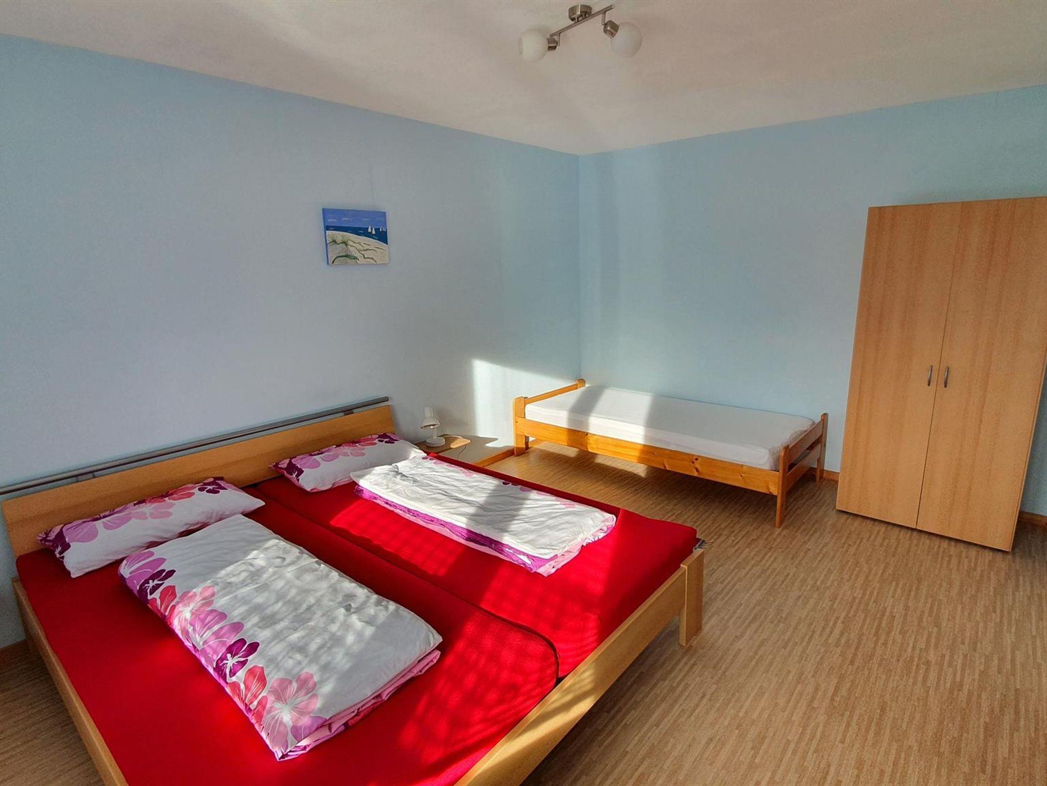 • Schlafzimmer mit Doppelbett und einem Einzelbett