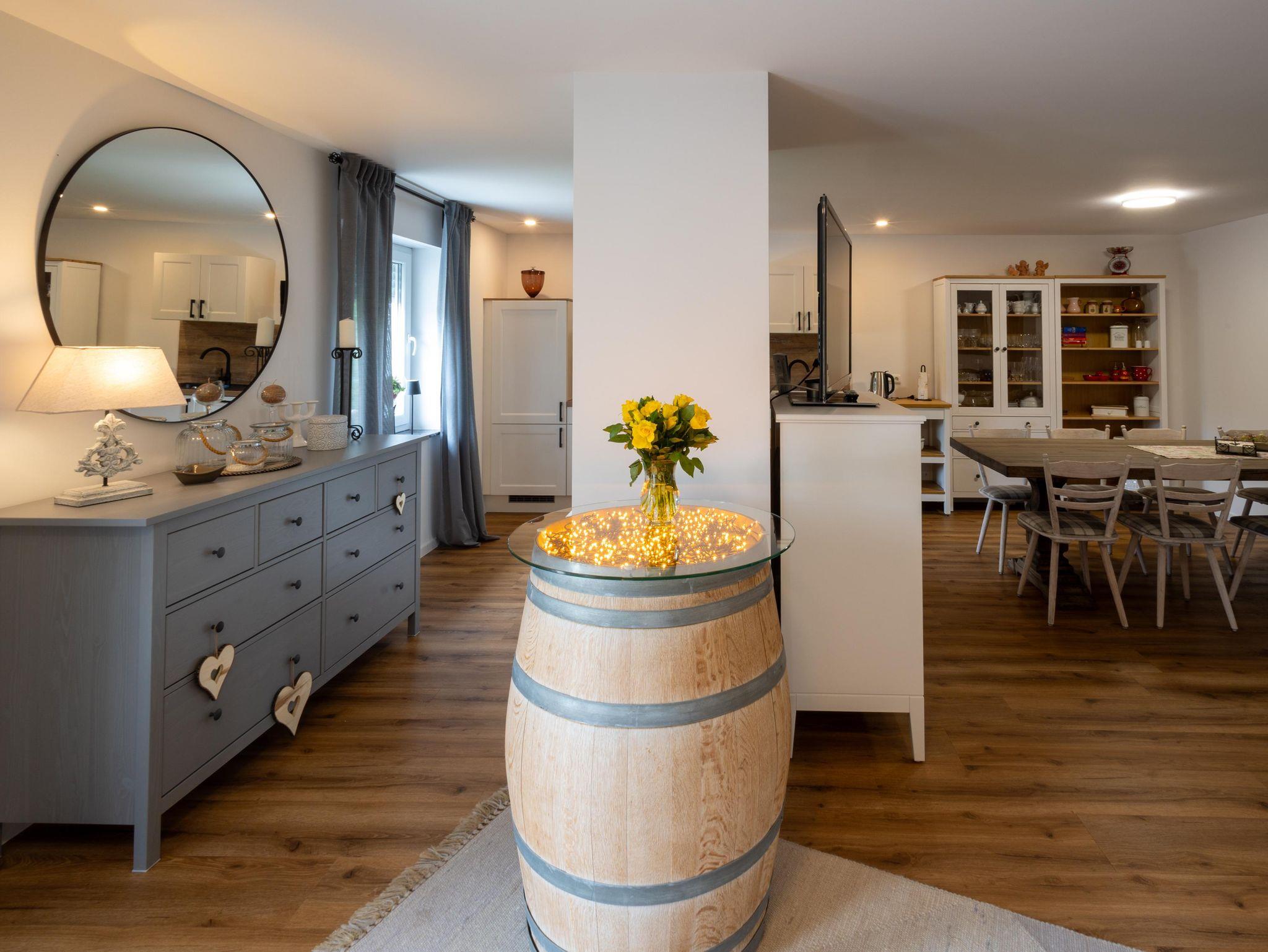 Unsere moderne und großzügige Ferienwohnung in ruhiger Lage bietet auf rund 93 m² viel Platz für einen entspannten Aufenthalt. Sie ist liebevoll eingerichtet und eignet sich ideal für Familien oder kleine Gruppen. Zwei separate Schlafzimmer mit jeweils komfortablen Doppelbetten sorgen für erholsame Nächte. Eine zusätzliche Schlafcouch im Wohnbereich bietet bei Bedarf Platz für zwei weitere Personen.