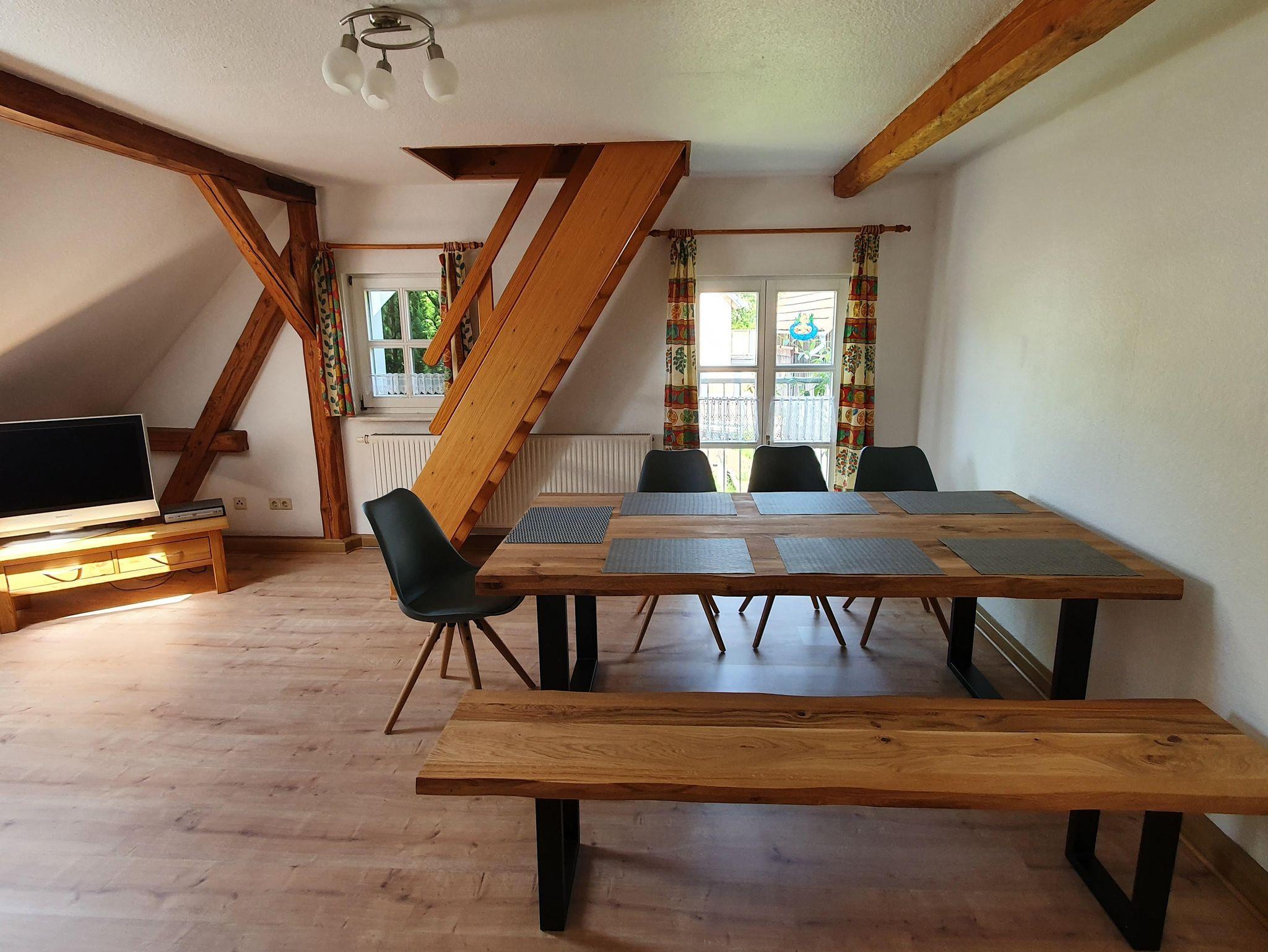 Das Storchennest ist eine sehr geräumige Wohnung auf zwei Etagen. Sie wurde im Mai 2022 renoviert und begrüßt Sie u.a. mit einem tollen neuen Fußboden und einer großzügigen neuen Essecke.