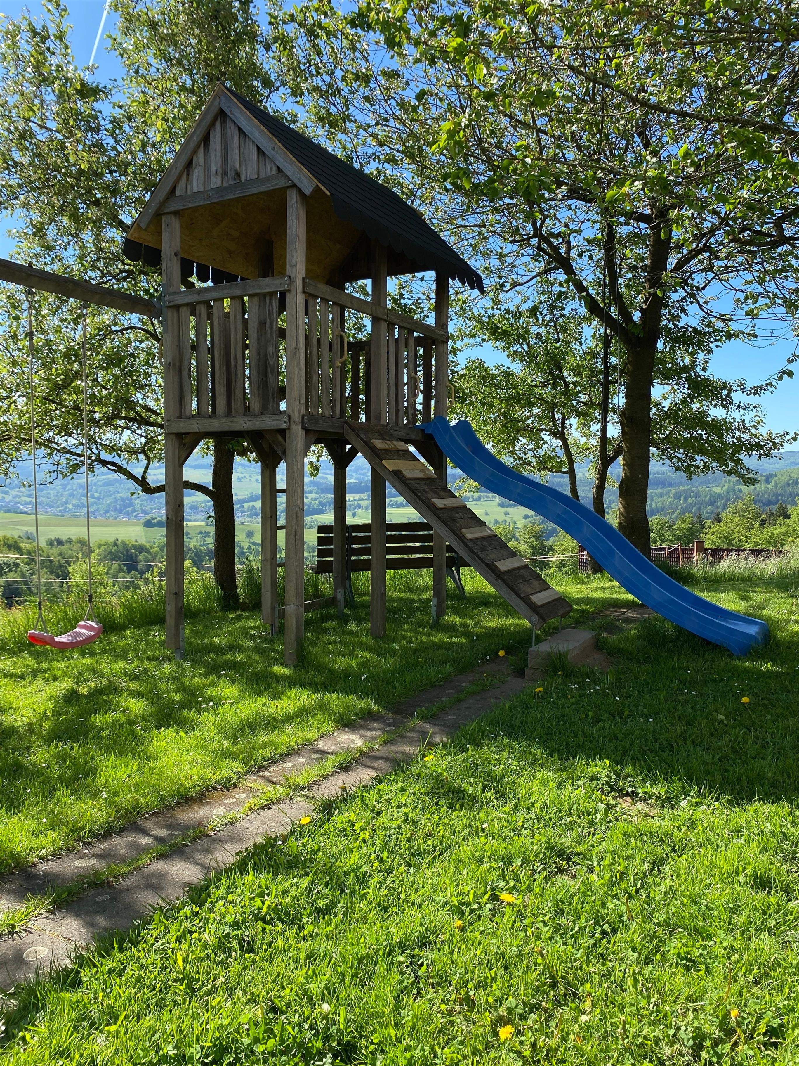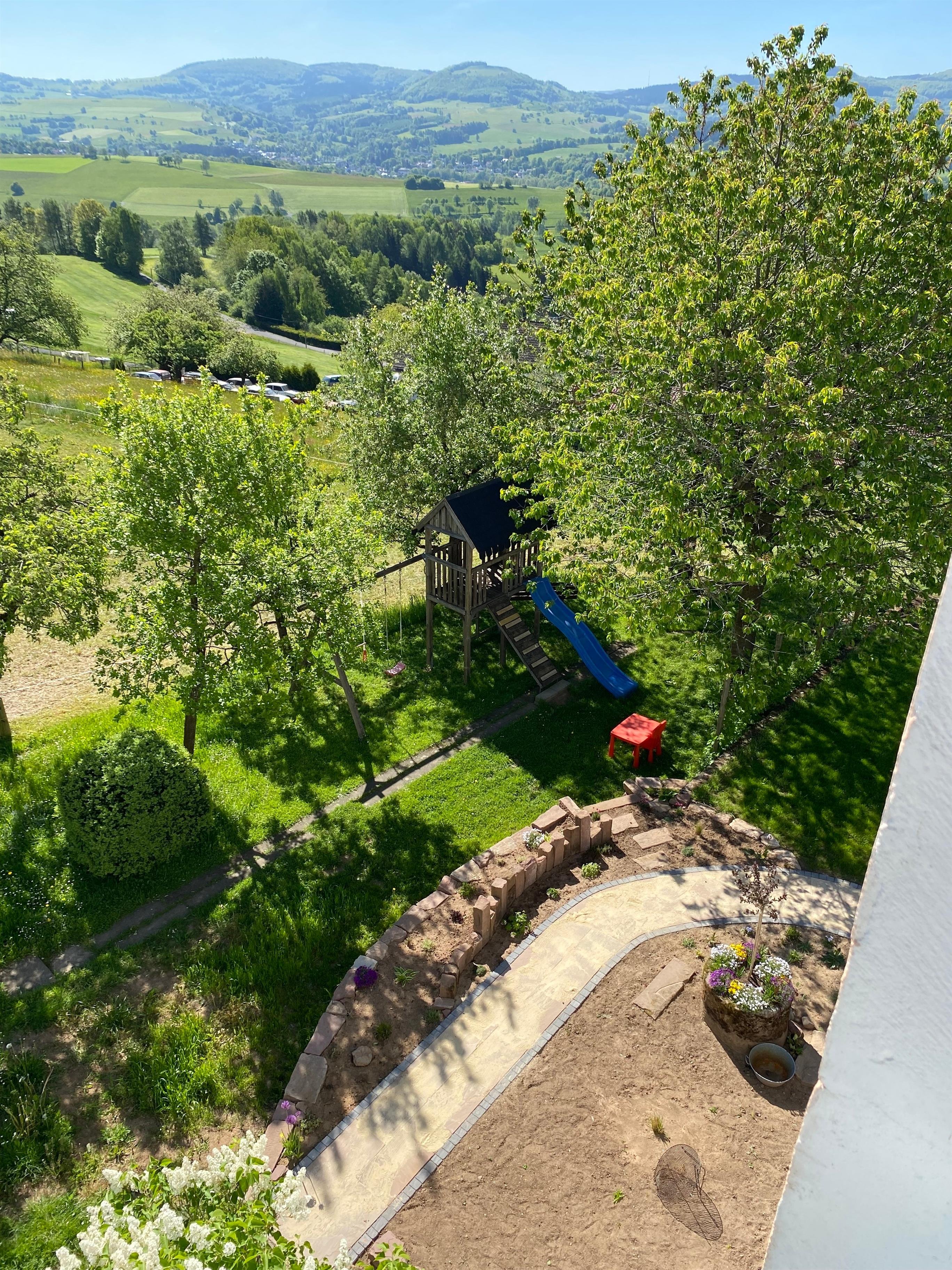 Dafür steht Ihnen im Garten eine Sitzgelegenheit zur Verfügung.