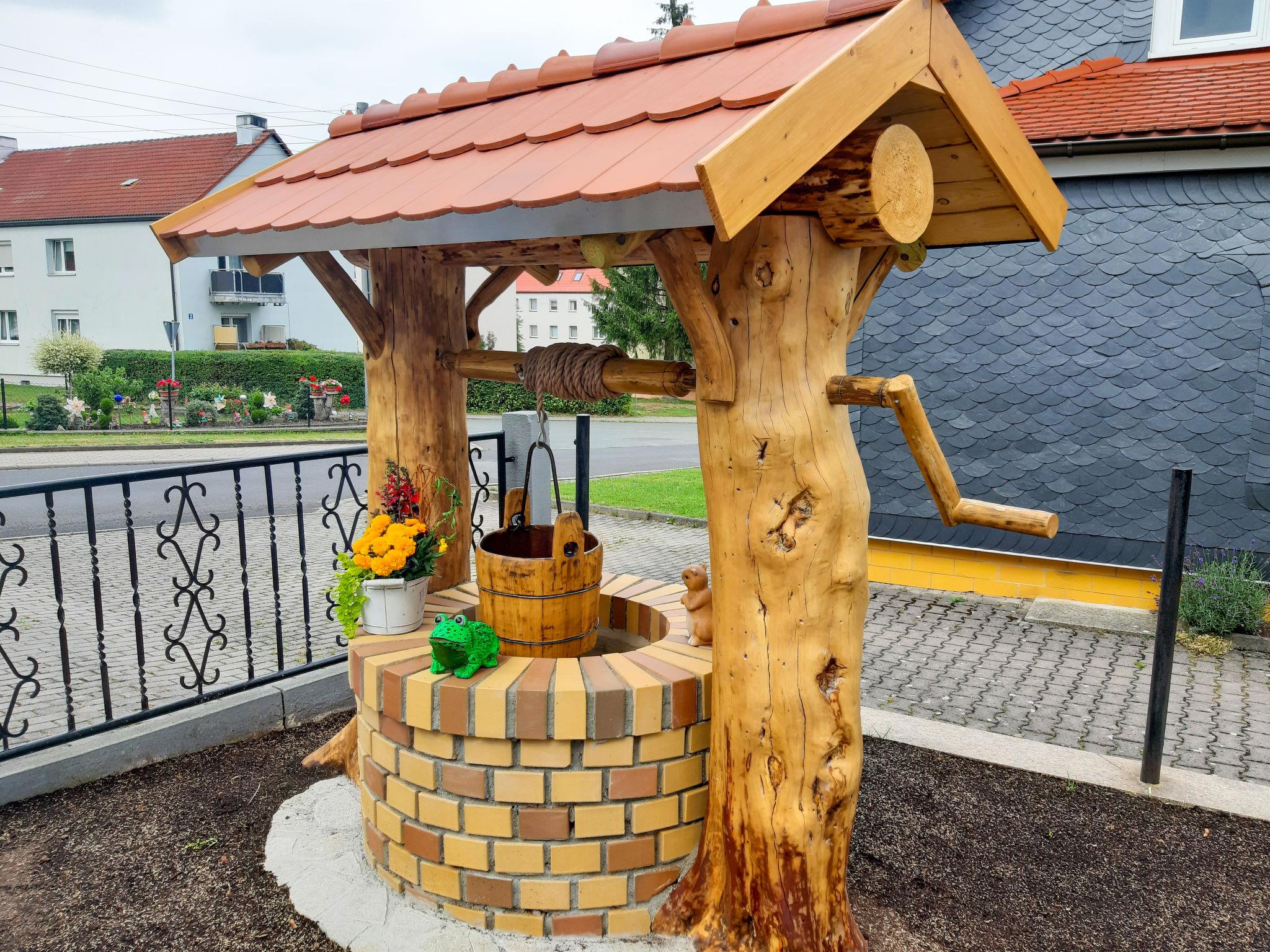 House "Schneider". 500 m from the centre of Geschwenda, 3 km from the centre of Geratal, 24 km from the centre of Suhl, in the residential district. For shared use: property, garden 500 m2 with lawn and trees. Children's playground (swing), parking on the premises. Shop 300 m, restaurant 500 m, bus stop 500 m, outdoor swimming pool, indoor swimming pool 10 km. Cross country ski track 15 km. Well-known ski regions can easily be reached: Oberhof 15 km. Please note: the owner lives on the same property.