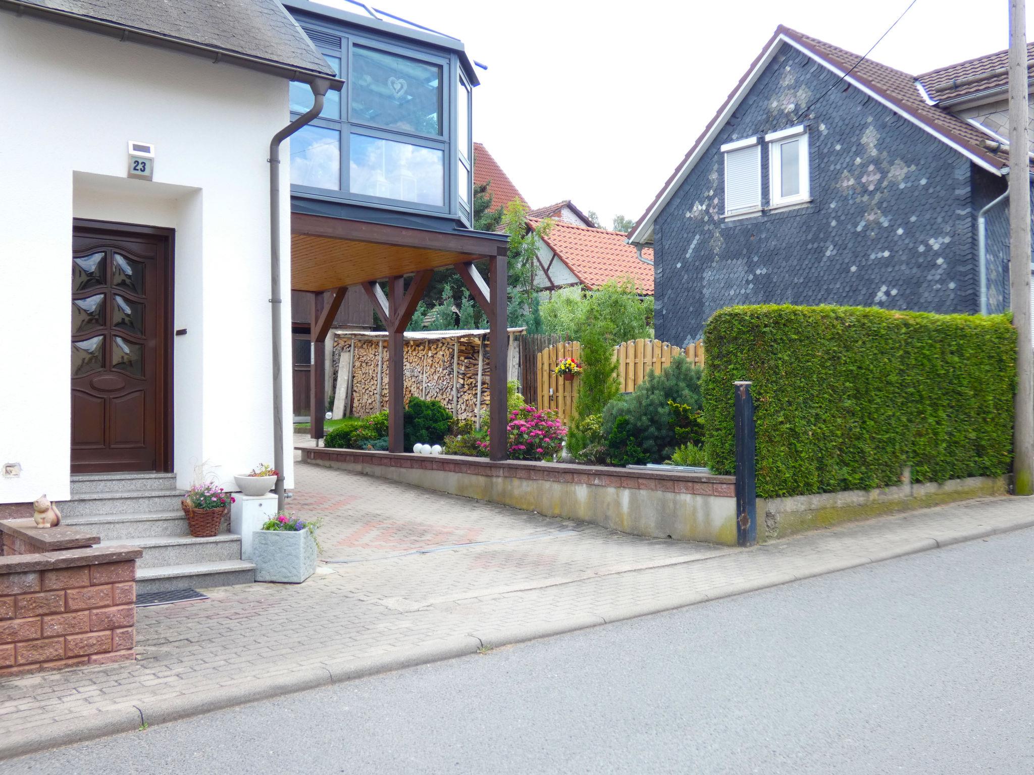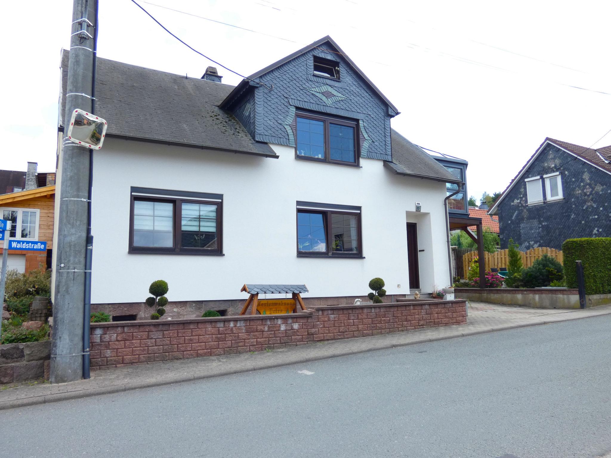 Frankenhain 5 km from Geschwenda: 2-family house "Petra". In the resort 500 m from the centre of Frankenhain, in a quiet position, 300 m from the edge of the forest, 5 km from the lake. Parking at the house. Shop 300 m, grocery 300 m, supermarket 3 km, shopping centre 3 km, restaurant 300 m, bus stop 200 m, railway station "Gräfenroda" 3 km, outdoor swimming pool 15 km, indoor swimming pool 15 km, bathing lake 5 km. Golf course (18 hole) 26 km, ski lift 15 km, chair lift 15 km, skisport facilities 15 km, slopes 15 km, ski rental 15 km, ski school 15 km, cross country ski track 500 m. Well-known ski regions can easily be reached: Oberhof 15 km. Well-known lakes can easily be reached: Talsperre Lütsche 5 km, Talsperre Ohra 13 km.