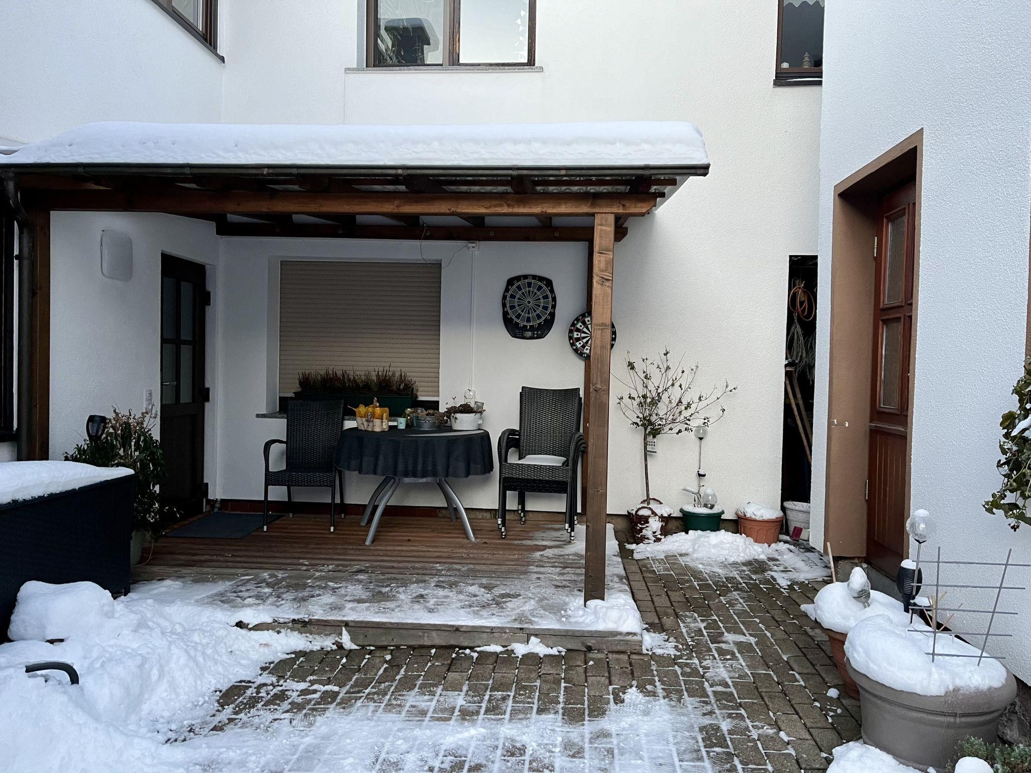 3-room apartment 85 m2, on the ground floor. Cosy and wooden furniture furnishings: living/sleeping room with 1 sofabed and cable TV (flat screen). 1 room with 1 double fold-away bed (140 cm, length 200 cm), dining table and cable TV (flat screen). 1 room with 1 double bed (160 cm, length 200 cm). Open kitchen (oven, dishwasher, 4 induction hot plates, kettle, microwave) with small bar, dining table. Bath/shower/WC with corner bath. Heating. Parquet floors, carpet. Terrace 15 m2 partly roofed, large patio 30 m2. Terrace furniture, barbecue (portable). Facilities: children's high chair, baby cot, hair dryer. Internet (WiFi, free). Please note: non-smokers only. Private entrance, smoke alarm.