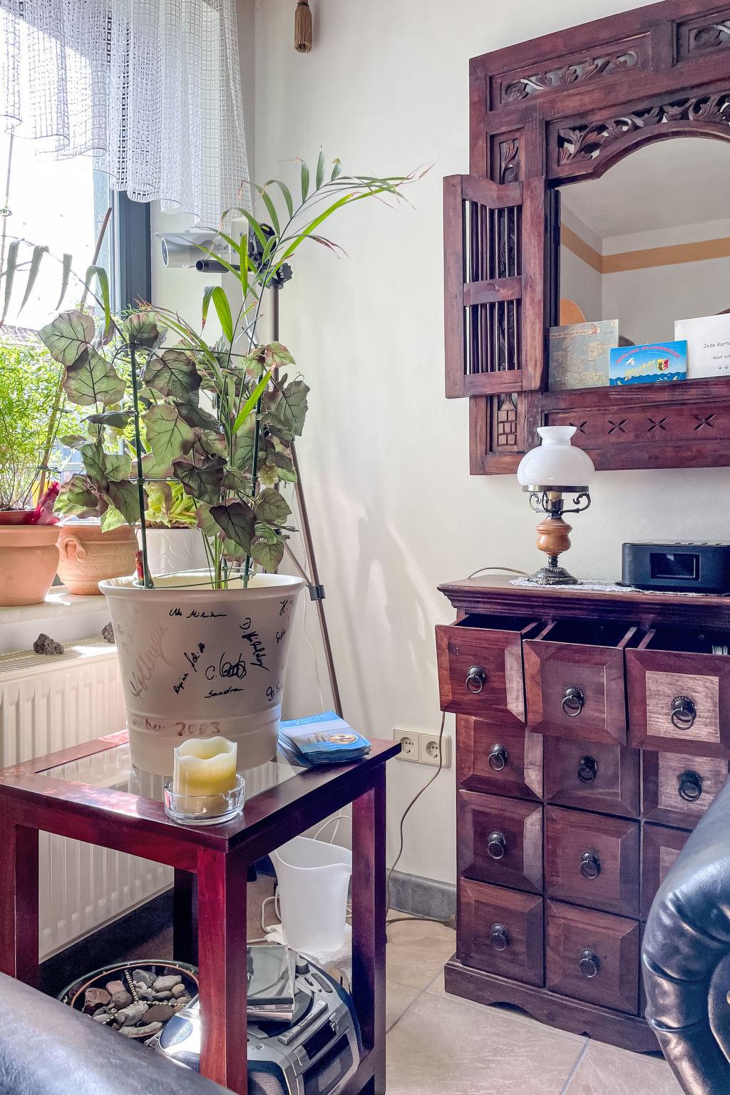 Beautiful, cosy apartment house, 2 storeys, renovated in 2022. In the centre of Gingst, in a quiet position, 10 km from the sea. For shared use: property 600 m2 (fenced) with lawn and flowers, beautiful garden to relax. Barbecue, fireplace. In the house: lounge, infrared sauna, storage room for bicycles, washing machine (extra), tumble dryer (extra). Parking at 50 m. Shop 50 m, supermarket 500 m, restaurant 20 m, bakery 500 m, bus stop "Gingst" 500 m, sandy beach 10 km. Nearby attractions: Störtebeker Festspiele 20 km, Hansestadt Stralsund 30 km, Ostseebad Binz 40 km, Miniaturpark Rügen 1 km. Please note: suitable for families. The owner lives in the same residence. The owners greet guests personally upon arrival. For fire safety reasons, the parking space for electric cars/hybrid vehicles is located about 50 m away outside the property. Very lovingly furnished by the owner.