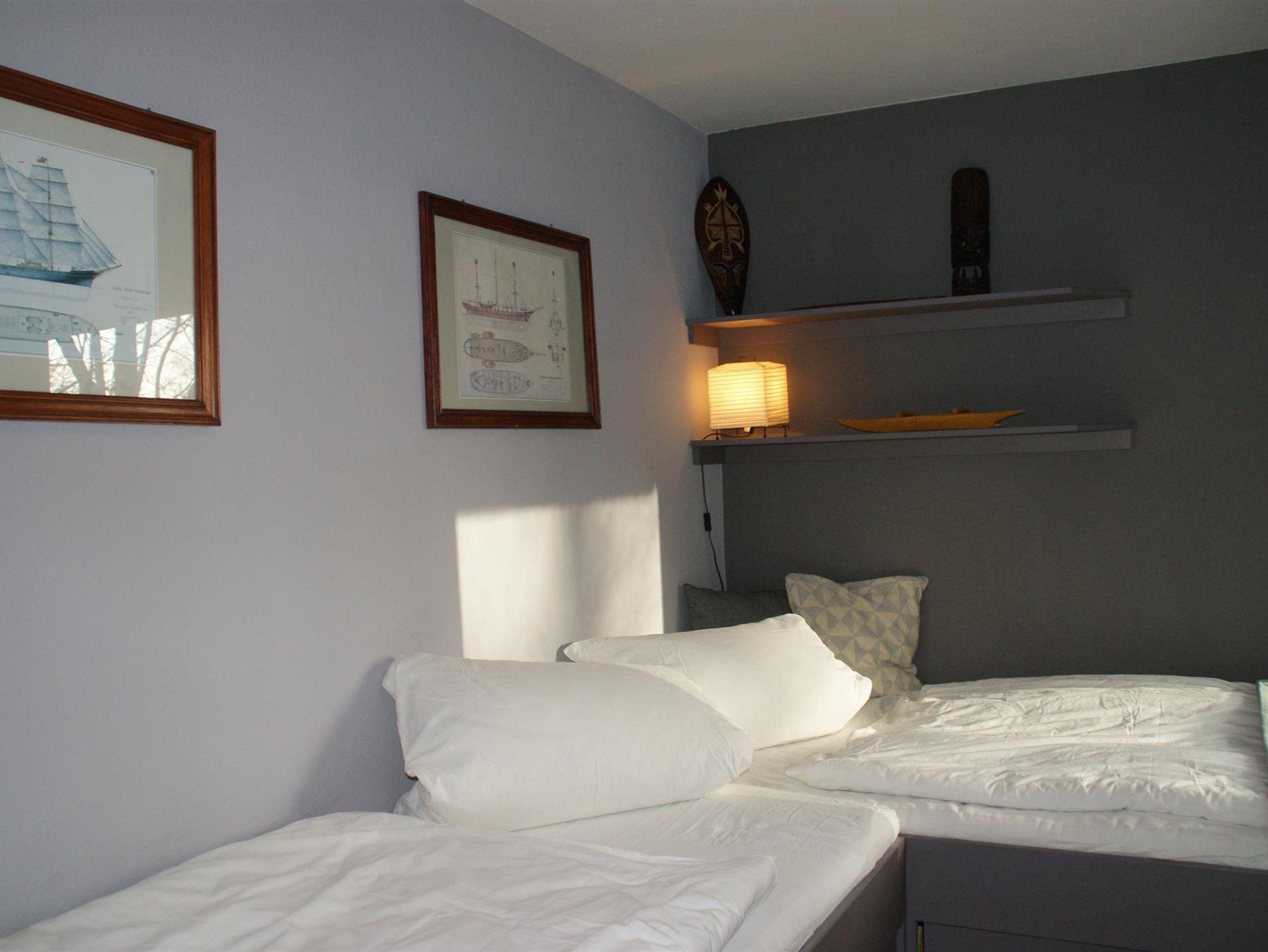 • 1 Schlafzimmer mit zwei Einzelbetten über Eck und ein Rollbett für 1 Kind bis 4 Jahre