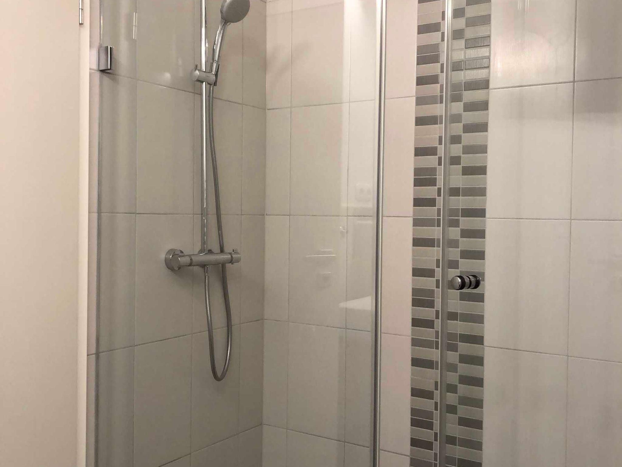 Komplett neu renoviertes 1-Zimmer-Appartement (3. OG) für 2 - 3 Personen mit Duschbad, Küchenzeile, Balkon und Meerblick.