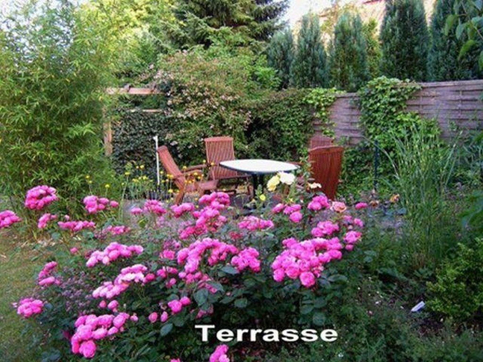 • seperate Terasse mit Gartenmöbeln, Sitzauflagen, Holzgrill