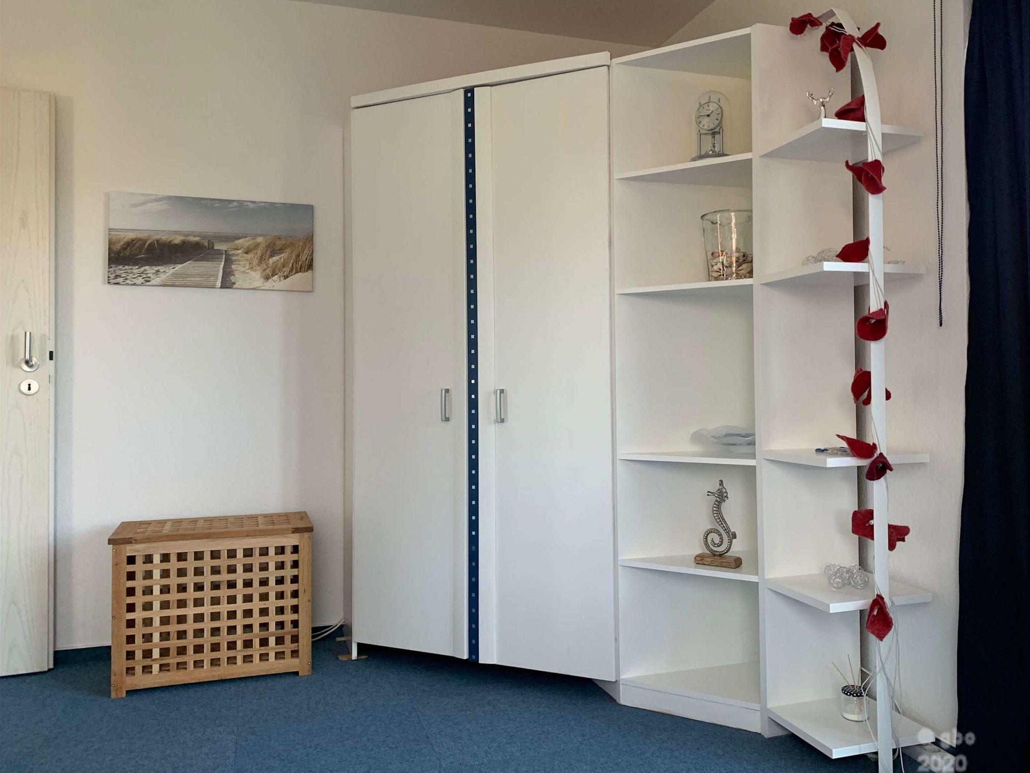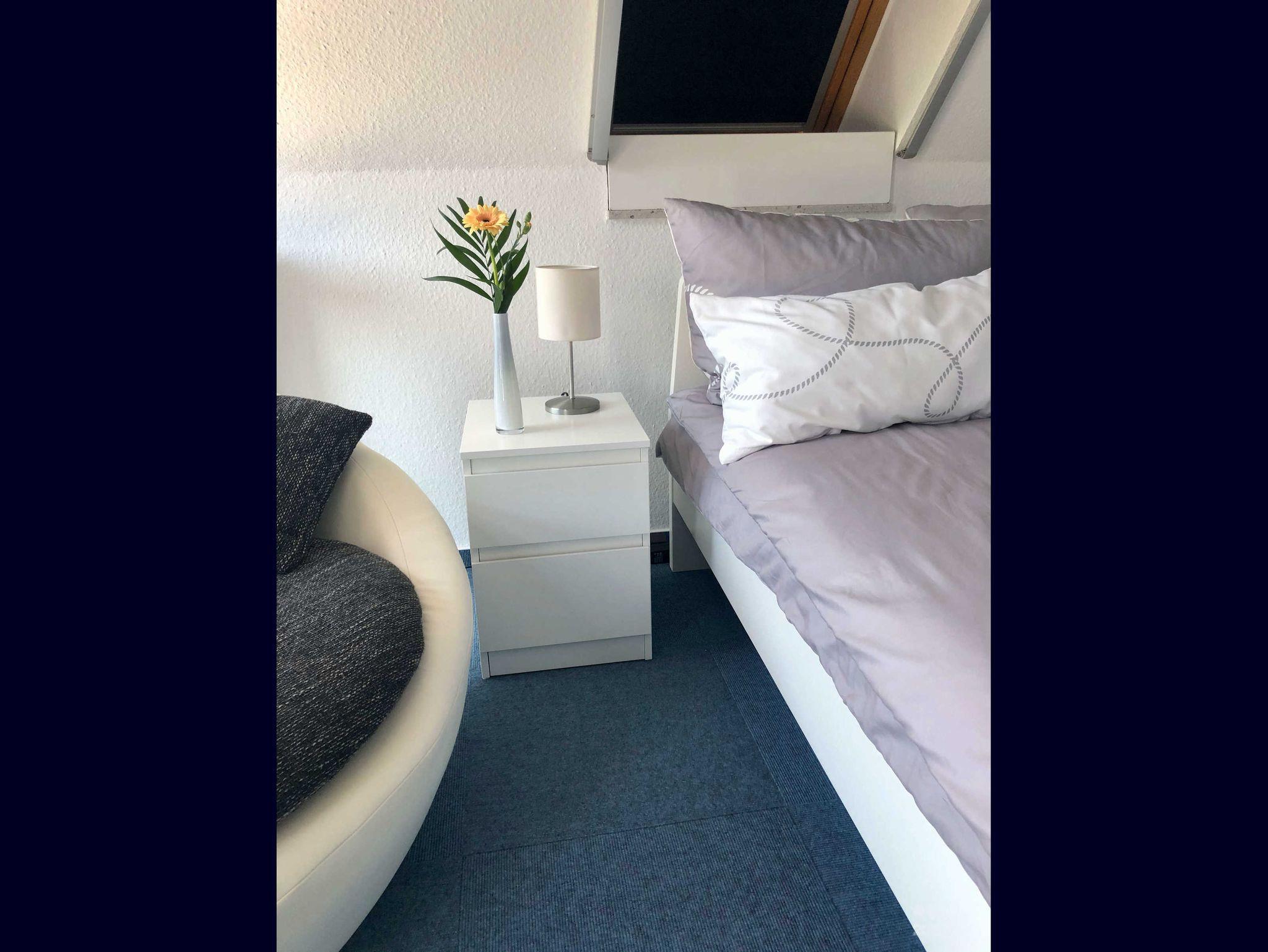 Sie wohnen in einer maritim eingerichteten Wohnung mit Gartenblick in einem ruhigen Wohngebiet im Dachgeschoss eines Einfamilienhauses.