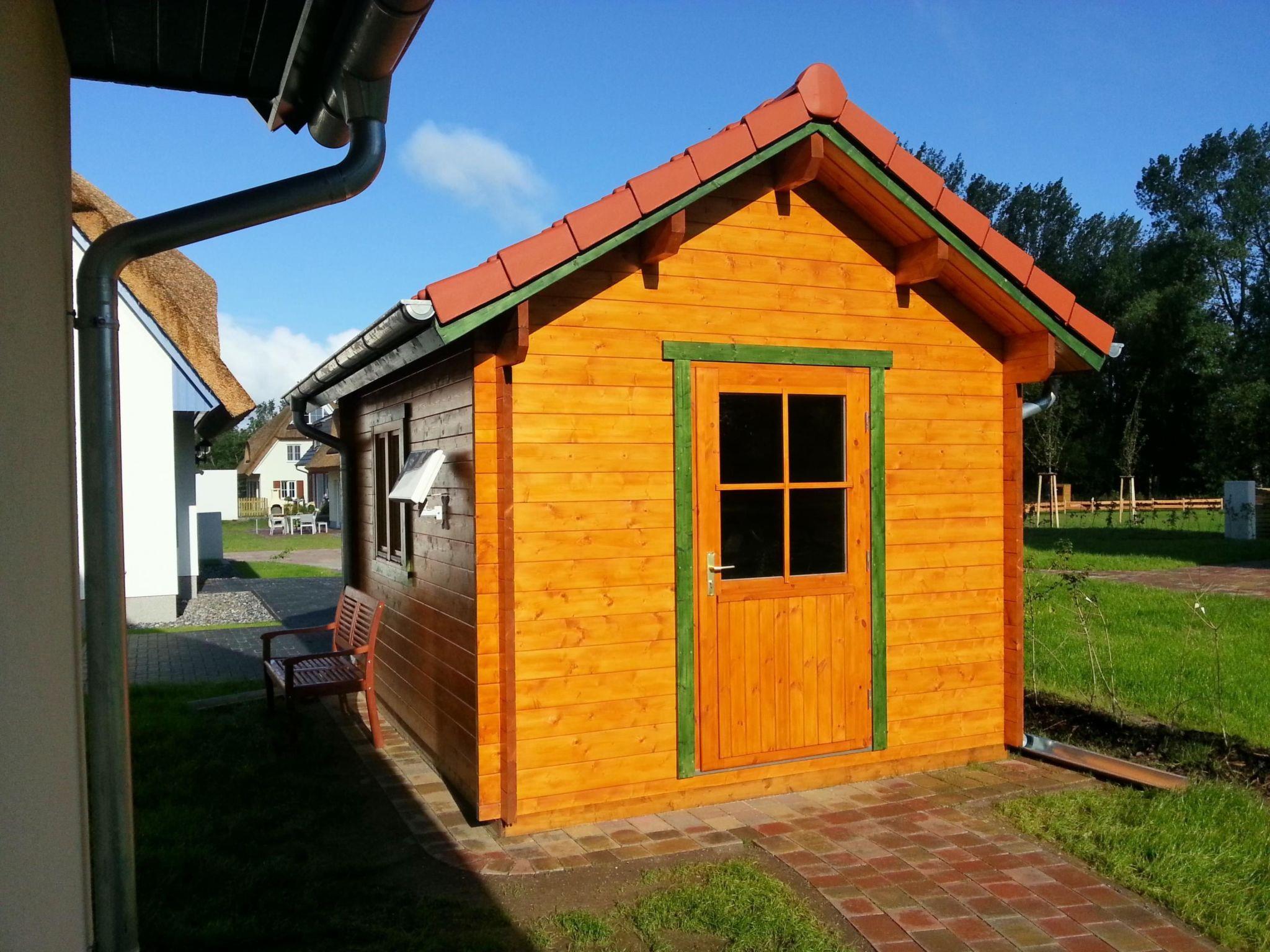 You can enjoy the fresh Baltic Sea air in peace and quiet on the 546 square metre property. The largest part is located on the south side between the large terrace and a variety of plants. This large lawn area invites you to sunbathe and play. The garden equipment includes a garden table, six garden chairs, a garden bench, two garden loungers, a parasol and a high-quality charcoal barbecue as well as a beach chair. The quiet spots in the beach chair will be much sought after. Two car parking spaces and a bicycle stand are located directly on the property. A large lockable garden log cabin offers plenty of space for storing bicycles, prams or garden furniture. A handcart invites your children to go to the beach. The children's playground belonging to the holiday complex is only approx. 100 metres away.
