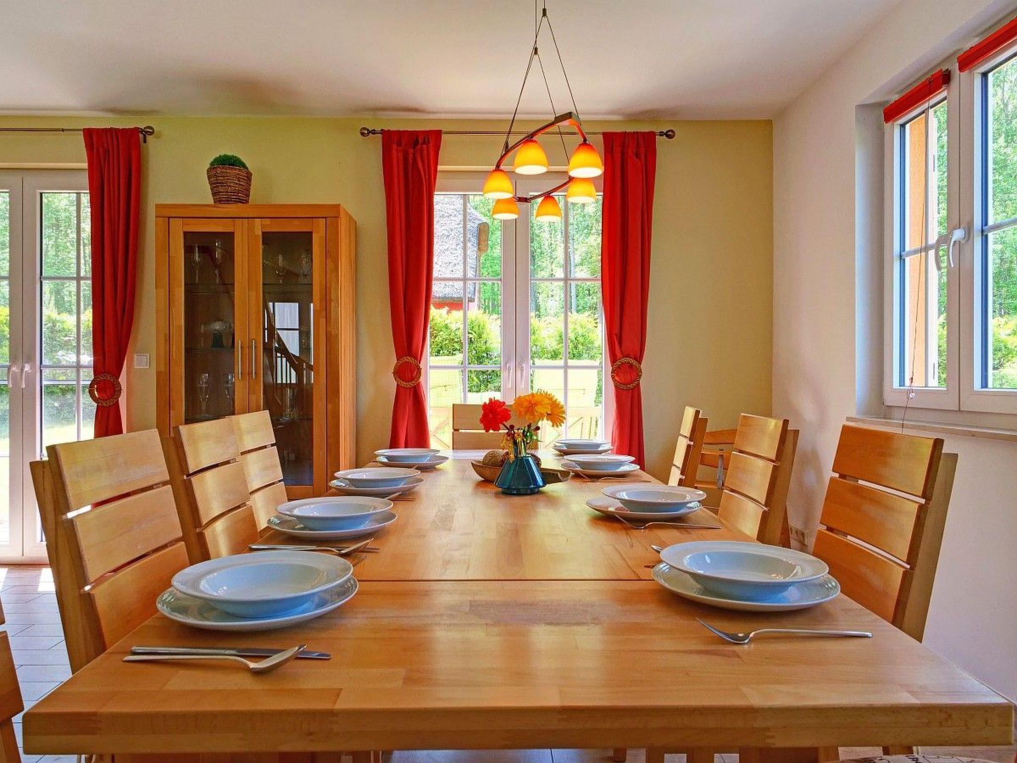 Inside the detached house, you will find modern and family-friendly furnishings on approx. 125 m² of living space. On the ground floor, the spacious living and dining area with a fully equipped, open-plan kitchen invites you to cosy get-togethers. Three bedrooms on the upper floor and an additional living/sleeping area in the converted loft offer enough space for up to ten adults and a small child. Two high-quality bathrooms, a wood-burning stove, LCD TV, WLAN, high chair and cot round off the facilities.