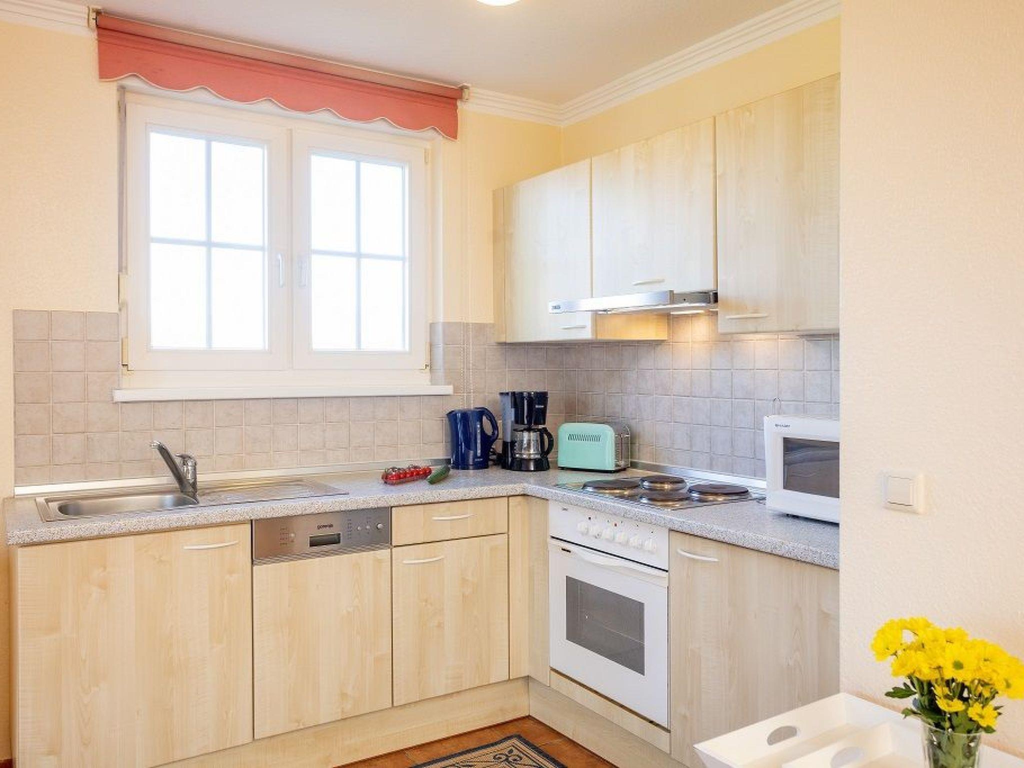Inside, the flat impresses with a living space of 73 square metres, offering enough space for up to four guests. Located on the ground floor, it has a cosy living room, a quiet bedroom with a separate WC and a fully equipped kitchen that enables self-catering at the highest level. The modern yet cosy interior design will immediately make you feel at home and enjoy every moment of your time away.