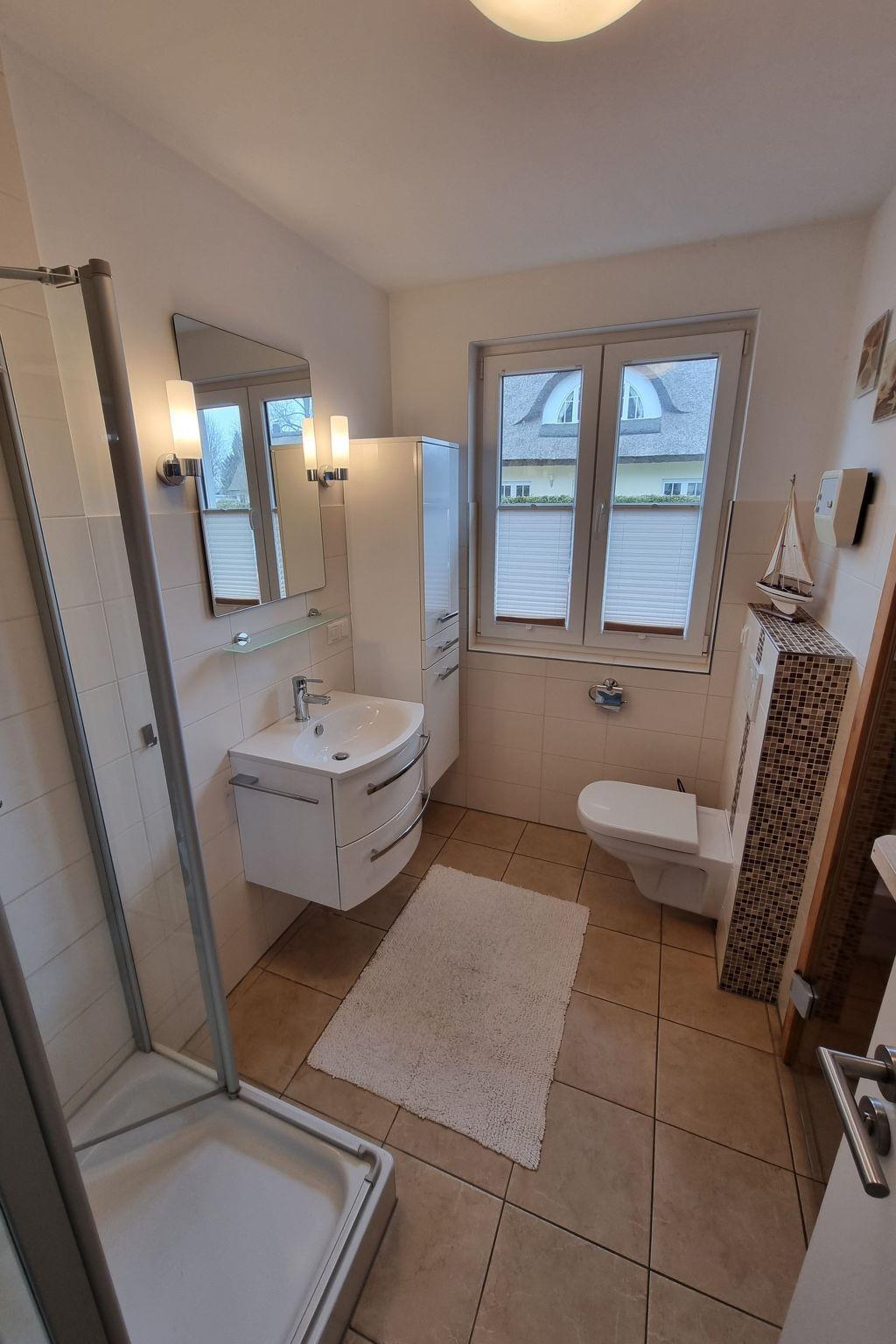 The holiday home Toddy is characterised by its location between the beach of the Baltic Sea and the large Jasmund Bodden. The seaside resort of Glowe is picturesquely situated on the long, fine sandy Baltic Sea beach of Tromper Wiek Bay. The seaside resort is an up-and-coming holiday destination. The beautiful beach promenade with Kurplatz invites you to take a stroll. Glowe's landmark, the "Ostseeperle", built in 1968, is located directly on the promenade. Today, the striking glass building, which is a protected monument, houses a modern restaurant with a lakeside terrace and a magnificent view of the water. The new marina with restaurant, boat hire, fishing trips and boat excursions to Hiddensee is located on the Königshörn cliff. Organised or independent sailing trips in all directions round off the offer. The small Cape Königshörn with its observation tower offers a marvellous panoramic view over the Tromper Wiek to the famous Cape Arkona. Glowe is the ideal location for bicycle tours. Whether short or long - everyone gets their money's worth here. Short tours lead to Spykersche See or to the Bodden coast of Glowe, longer tours lead to Cape Arkona or along the Jasmund Bodden to Lietzow. Bicycle hire is available directly at the Ostseepark and can be reached on foot from the holiday home in 2 minutes.