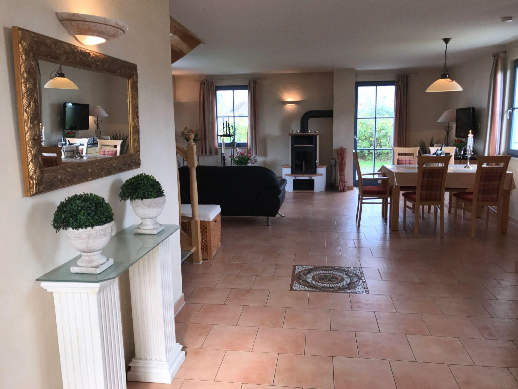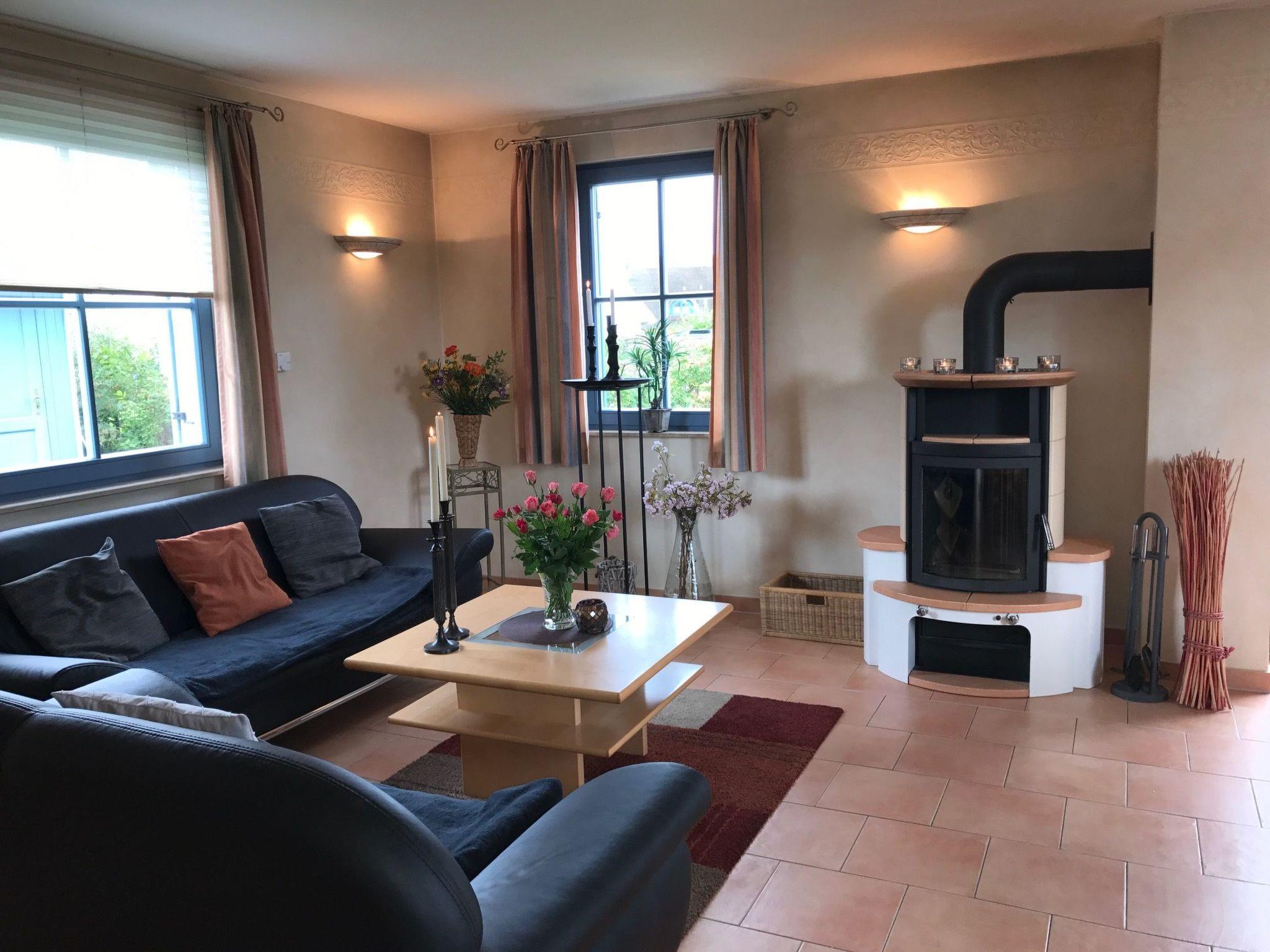 Sauna, washing machine, fireplace, two bathrooms, terrace with beach chair and patio furniture, two bedrooms each with a double bed, washing machine. (coin-operated) 2 car parking spaces. The property is fenced in with a frieze wall and rustic roses, WLAN.