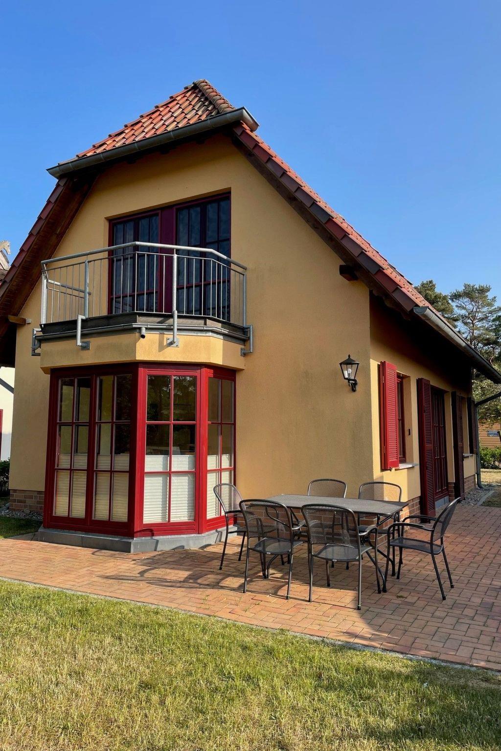 Welcome to the tastefully furnished holiday home Meeresstern. The fireplace guarantees romantic evenings. Three bedrooms on the upper floor with five beds two bathrooms living room dining room kitchen washing machine. Balcony and terrace, quiet location to relax. It is only about 400 metres to the fine white sandy Baltic Sea beach. Two car parking spaces are located directly at the house. Holidays also gladly with dog.