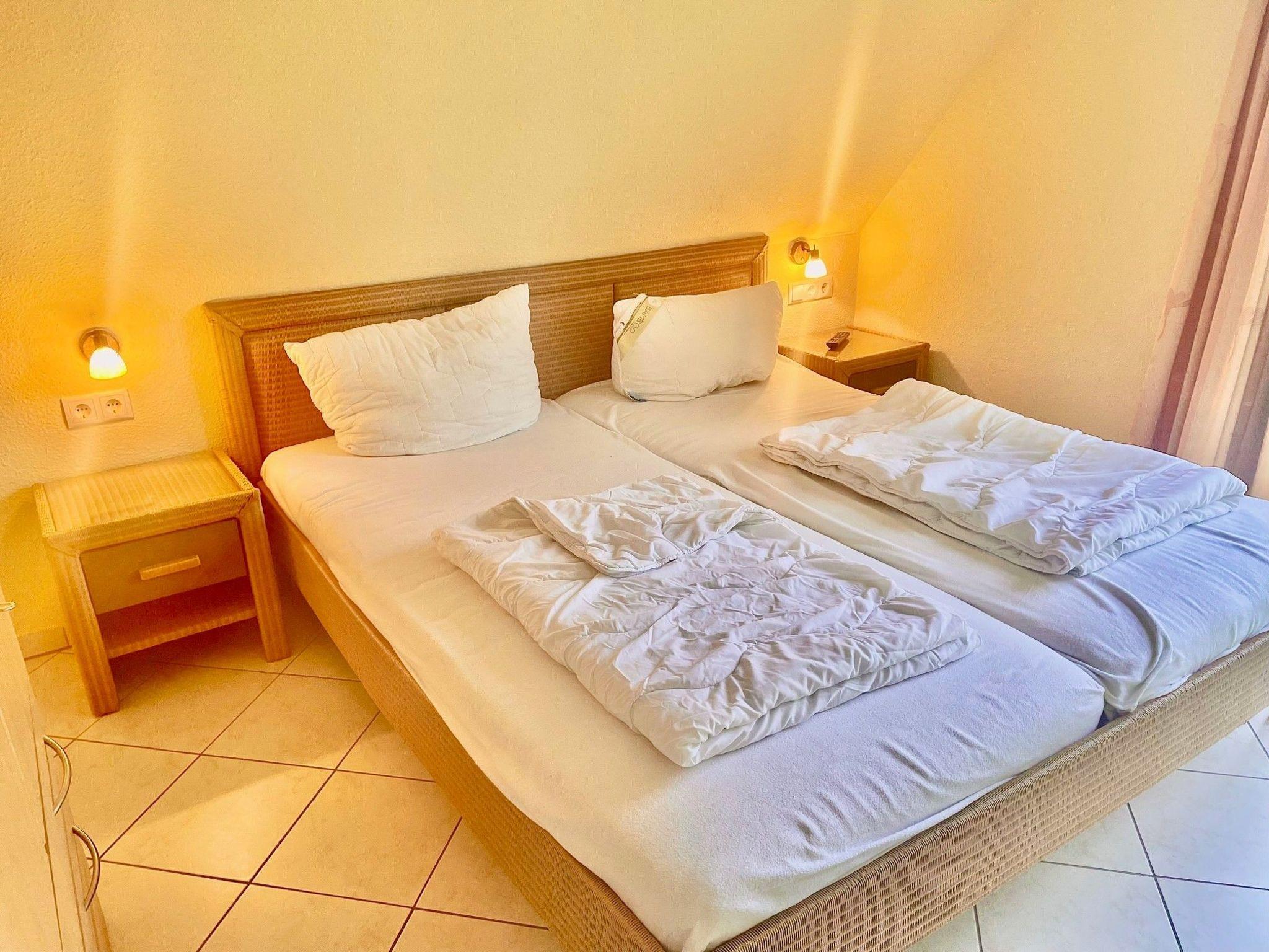 Approx. 400 m to the fine white sandy Baltic Sea beach. Safe access to the beach through a road subway.