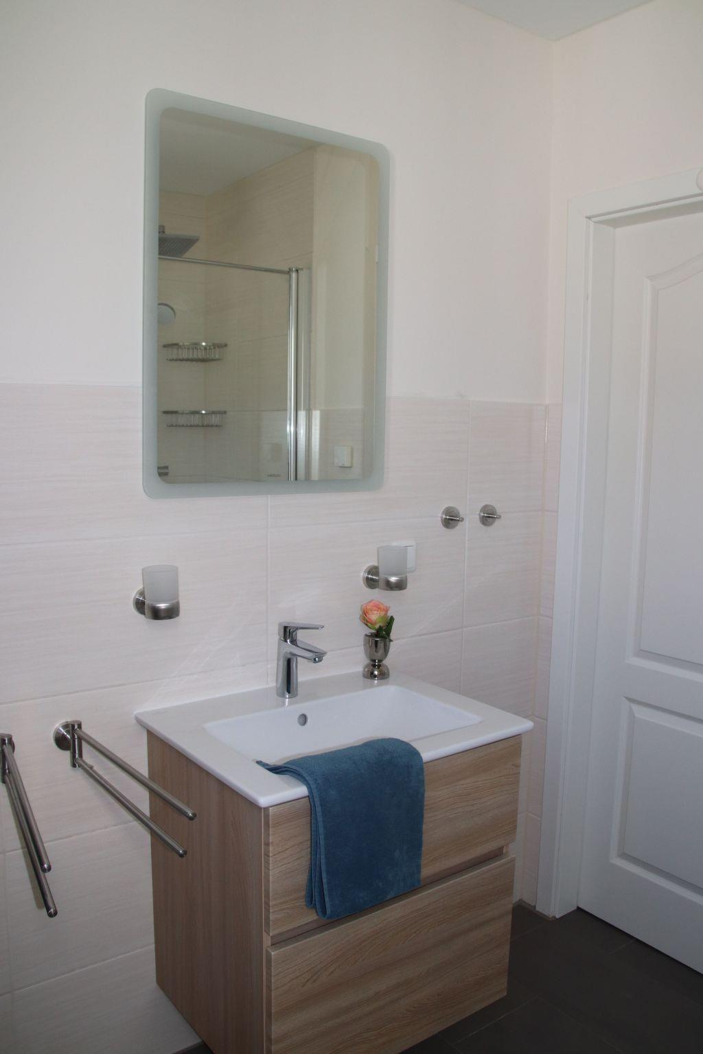 The ground floor has a fully-equipped kitchen, an oven with a ceramic hob, dishwasher, microwave, big fridge with several freezer compartments, coffee machine, toaster, kettle, all he necessary utensils, as well as an espresso maker, children’s crockery and cutlery, a waffle maker etc. The living and dining room provides a fireplace stove, a big LCD TV, a BluRay system with a radio and Apple docking station, books, children’s books, DVDs and of course a highchair. There is a laundry room with a washing machine and dryer, clothes horse, iron and ironing board. The bathroom has a washbasin, a big shower, a WC and ample storage space. All the windows have electronic blinds. Two terrace doors and the bathroom window are fitted with insect screens. The upper floor has three beautiful, spacious bedrooms (two each with a double bed, one with two single beds). All the bedrooms have quality mattresses, LCD TVs, radio alarms and plenty of cupboards. One bedroom also has a micro stereo system with an Apple docking station. The generous bathroom provides two washbasins, a shower, a WC and a lovely whirlpool. All the rooms on the upper floor have electronic blinds and insect screens fitted in the windows.