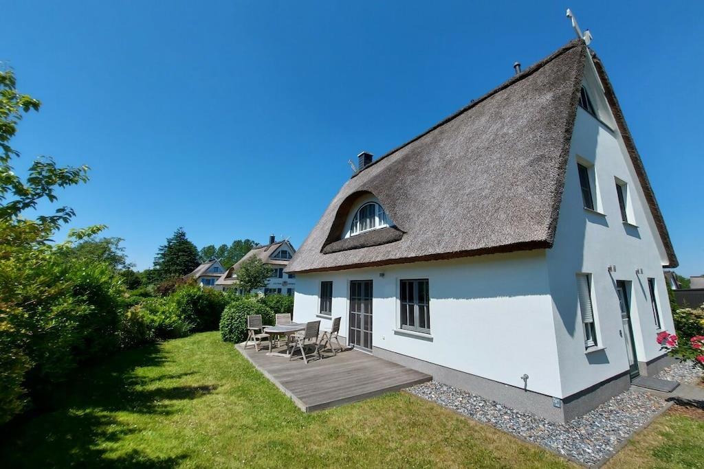 Unser Ferienhaus Strandgut Reethus im Ostseebad Glowe liegt in einer ruhigen Sackgasse und ca. 12 Minuten zu Fuß vom wunderschönen kilometerlangen Sandstrand in Glowe auf Rügen entfernt. Das geschmackvoll eingerichtete Ferienhaus Strandgut Reethus ist ca. 115 qm groß und bietet Platz für bis zu 8 Personen (ideal für vier Erwachsene und vier Kinder). Das Ferienhaus verfügt über 4 Schlafzimmer, 2 Bäder und eine Sauna. Das Wohnzimmer ist mit weißen Holzmöbeln und einer gemütlichen Couchecke eingerichtet. Ein Kaminofen sorgt für behagliche Wärme und Atmosphäre. Die hochwertige Wohnküche mit sich anschließendem großen Essbereich lässt keine Wünsche offen. Die beiden Holzterrassen, der Balkon und der Garten eignen sich hervorragend, um im Sommer auf einer Teakholz-Liege ein Bad in der Sonne zu nehmen oder auch um hier mit Freunden bei einem Essen die umliegende Naturlandschaft zu genießen. Der große Gartengrillkamin lässt keine Wünsche offen. Die Holzsprossenfenster und Terrassen-/Balkontüren sind mit Insektenschutzgittern versehen. Alle Fenster und Terrassentüren im Erdgeschoss sind mit elektrischen Rollläden ausgestattet. Der Bodenbelag besteht durchgängig aus Eichendielenparkett und großen Steinfliesen. Die Fußbodenheizung sorgt in allen Räumen für eine angenehme Wärme. Sie werden sich hier wohlfühlen. Zum Ferienhaus gehören zwei Parkplätze mit einer Lademöglichkeit für E-Autos. Ein Carport steht für ein Auto als Unterstand zur Verfügung. Das Grundstück ist vollständig eingezäunt.