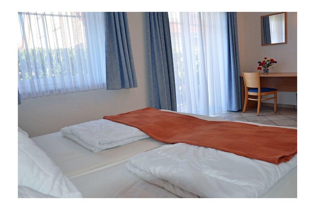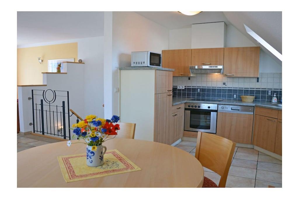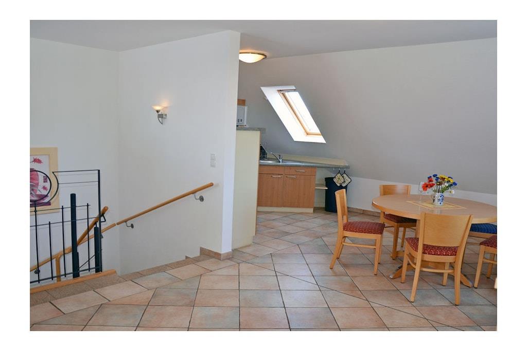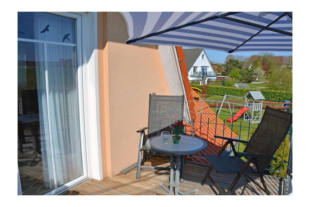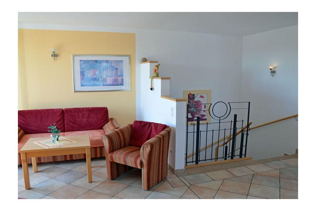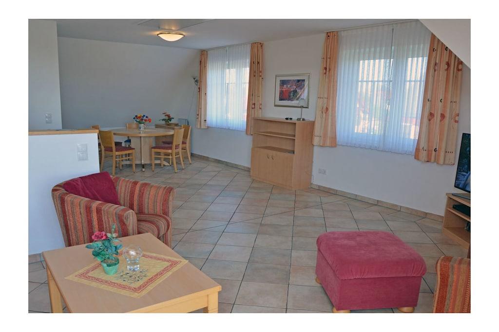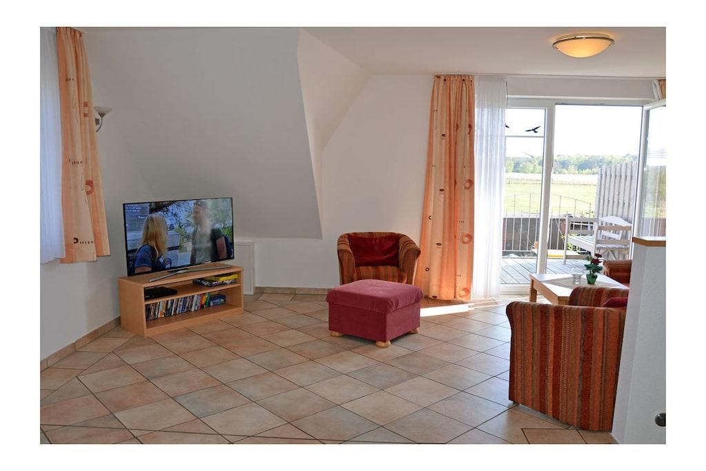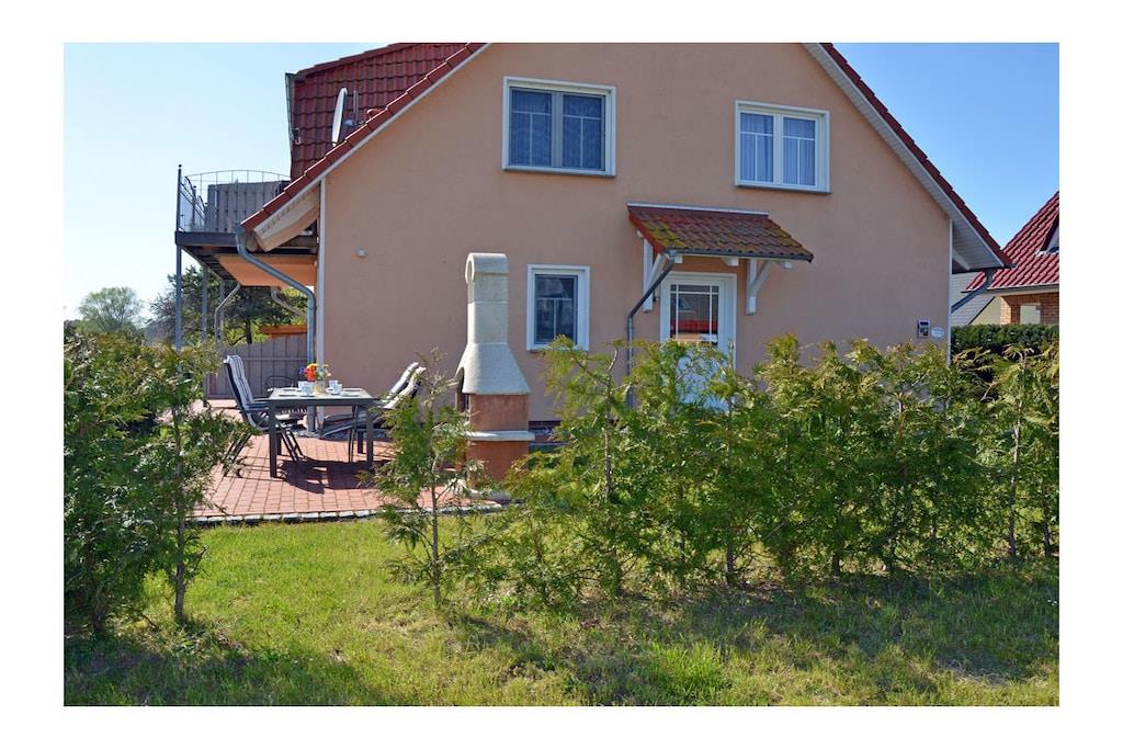 Erholungsort Glowe, über 2 Etagen, Haushälfte, sehr ruhige Lage, ca. 400 m zum Sandstrand (Ostsee), ca. 1 km zum Bodden Obere Etage: Wohn- Essbereich mit Sitzecke und gemütlicher Couch, TV/ Sat (Flatscreen) mit DVD-Player, Blu-ray Player, Radio/ CD, Fußbodenheizung im gesamtem Haus, offene komplett ausgestattete Einbauküche mit 4- Plattenherd (Ceranfeld), Backofen, Kühlschrank mit kleinem Gefrierfach, Mikrowelle, Geschirrspüler und diversen Elektrogeräten Parterre: Bad mit Dusche/ WC, 1. Schlafzimmer mit Doppelbett und Kleiderschrank, 2. Schlafzimmer mit 2 Einzelbetten und Kleiderschrank, Balkon mit Gartenmöbeln und Sonnenschirm An den Boddenwiesen- ruhig, idyllisch und familienfreundlich komplett umzäuntes Grundstück ca. 685 qm, Liegewiese und Kinderspielplatz, Terrasse mit Gartenmöbel, Grill vorhanden, Waschmaschine ohne Gebühr, Kinderhochstuhl und Kinderreisebett vorhanden, kostenfrei Internet (WLAN & LAN), abschließbare Fahrradabstellmöglichkeit, PKW- Stellplatz am Haus, Einkaufsmöglichkeiten, Bäcker und Restaurant in unmittelbarer Nähe, gute Rad- und Wandermöglichkeiten, Nichtraucherwohnung, Haustiere nach Absprache (Gebühr 5 Euro pro Haustier/ pro Tag) Genießen Sie vom Balkon den Blick über die Boddenwiesen bis hin zum Großen Jasmunder Bodden. Als Highlight des Abends können Sie das Feuerwerk der Störtebeker Festspiele bestaunen. gehört zu Objektnummer 163875 und kann zusammen gemietet werden