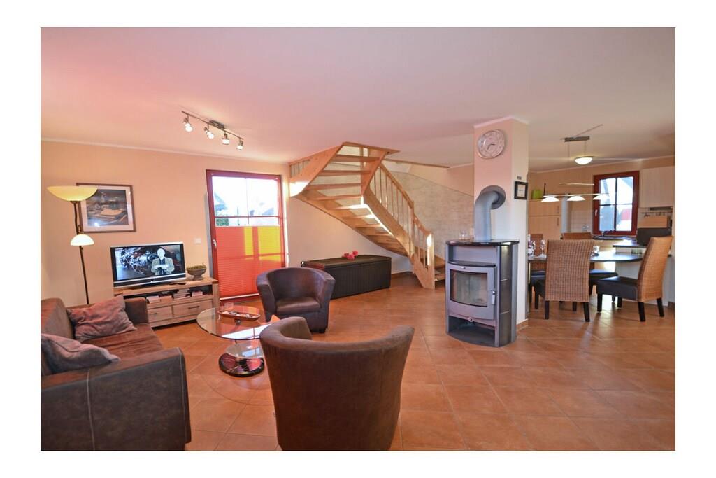 Erholungsort Glowe am Kliff Königshörn, über 2 Etagen, zentrale Lage, ca 400 m zum Sandstrand, ca 300 m zum Hafen Glowe Erdgeschoss: großzügiger Wohn- Essbereich mit Fußbodenheizung und Kamin, gemütliche Couch, TV/ Sat (Flatscreen), offene komplett ausgestattete Einbauküche mit 4- Plattenherd (Ceranfeld), Backofen, Kühlschrank mit kleinem Gefrierfach, Mikrowelle, Geschirrspüler und diversen Elektrogeräten, Bad mit Dusche und WC, Obergeschoss: 1. Schlafzimmer mit Doppelbett und Kleiderschrank, 2. Schlafzimmer mit 2 Einzelbetten, TV und Kleiderschrank, Terrasse mit Gartenmöbeln und Grill “ein unvergesslicher Urlaubsspaß zum träumen und genießen im Reethaus” Reetdachgedecktes Haus, komplett umzäuntes Grundstück ca. 500 qm, Waschmaschine ohne Gebühr, Liegewiese, 1 PKW- Stellplatz am Haus, ca. 400 m naturbelassener Pfad zum Ostseestrand, ca. 150 m zum Park mit großem Spielplatz, Einkaufsmöglichkeiten, Bäcker und Restaurant in unmittelbarer Nähe, optimale Rad- und Wandermöglichkeiten, Haustiere nach Absprache