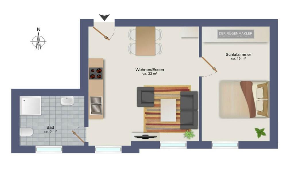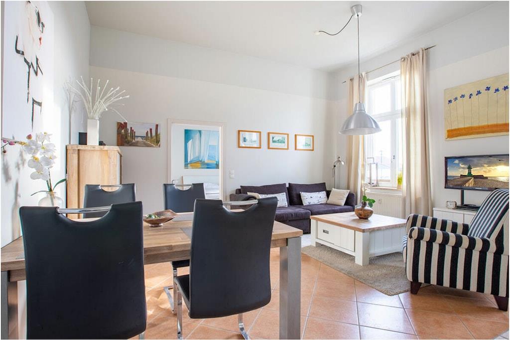 High-quality holiday apartment directly on the Baltic Sea beach (only 100m) and the harbor of Glowe, up to 4 people, Wi-Fi available